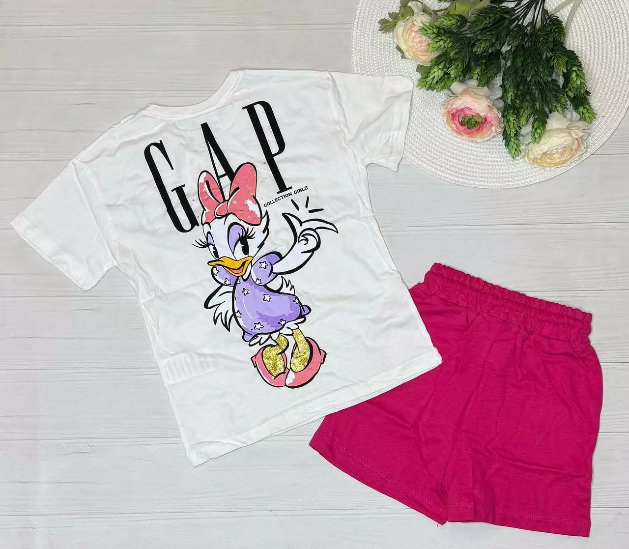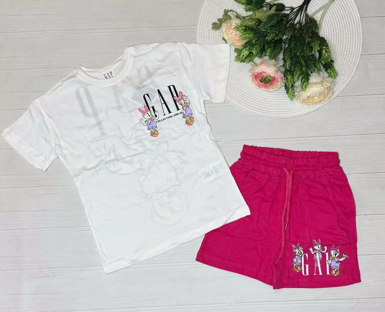 Костюм кежуал дівчаткам (футболка,шорти) дів. Молочний 7980 Jabber