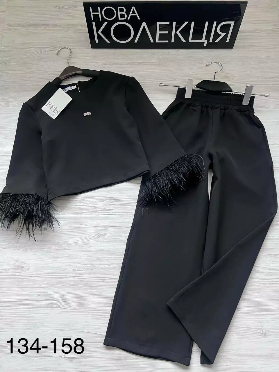 декоративний логотип.<br />Низ: чорні штани зі зручним