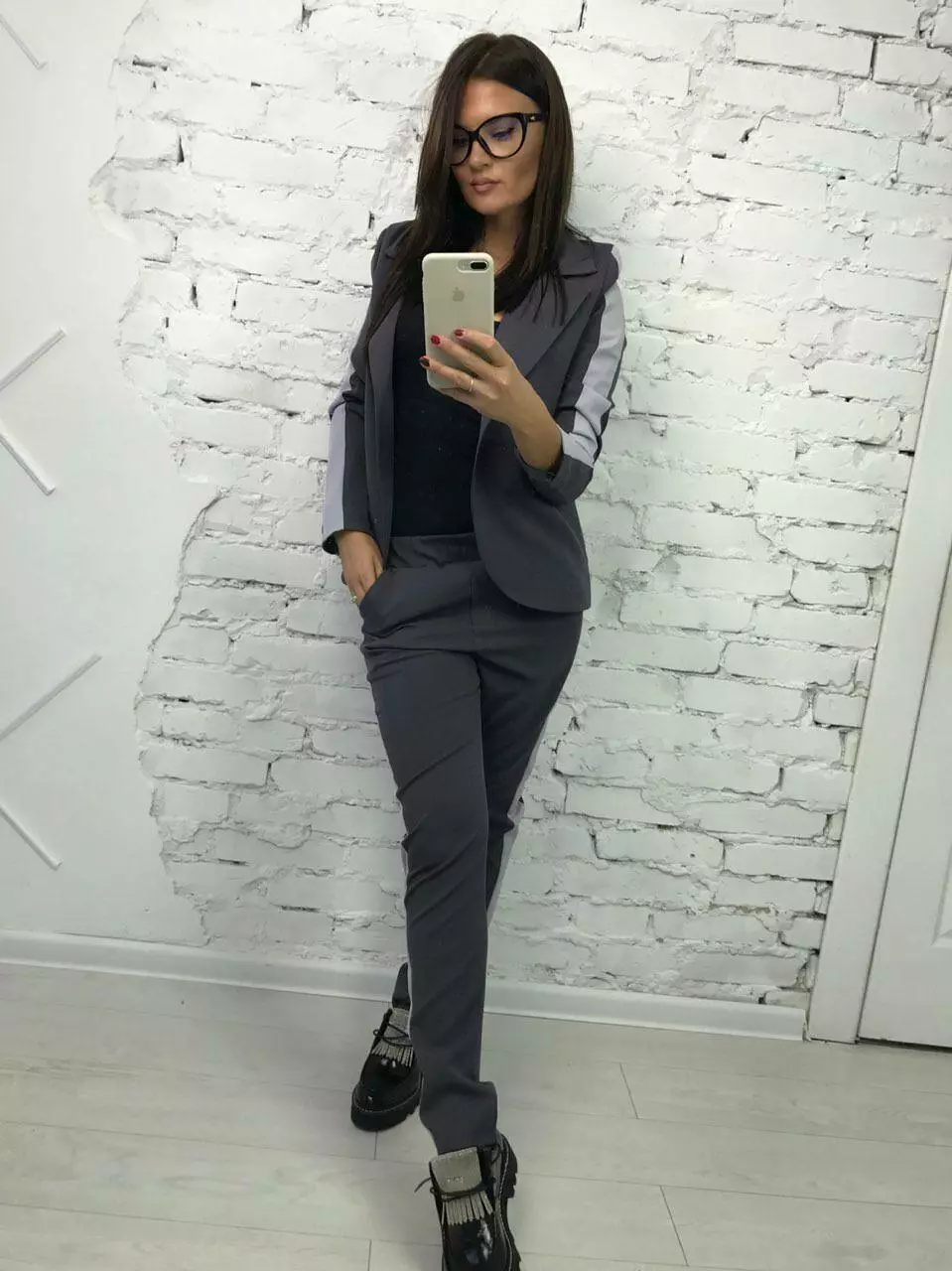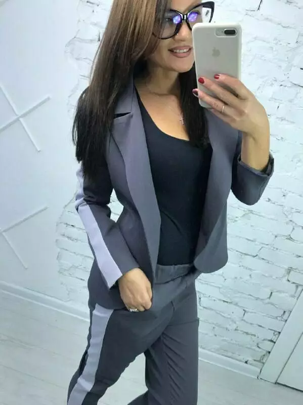 Костюм класика з лампасами колір сизий