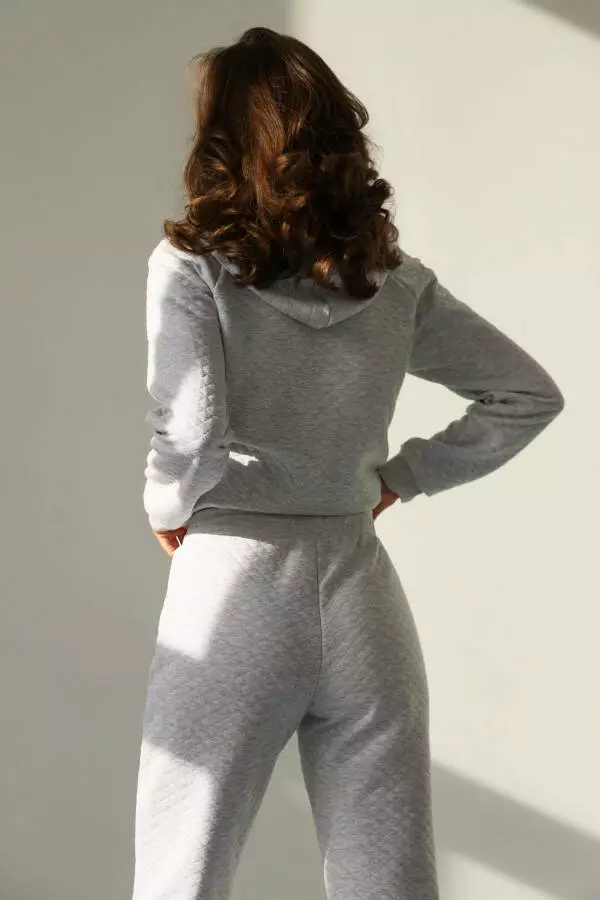 Костюм капітоній від брендового виробника German Volf складається з теплої кофти з застібкою на блискавці спереду та штанів-джогерів. Кофта та штани виготовлені з сірого меланжевого матеріалу та мають капюшон та кармани. Костюм ідеально підходить для комфортного та стильного вигляду в холодну погоду.