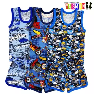 Летний костюм для мальчиков со спортивным принтом состоит из майки и шорт. Они имеют комфортный крой, который позволяет ребенку активно двигаться. Хлопковая ткань обеспечивает идеальную регулировку температуры тела.