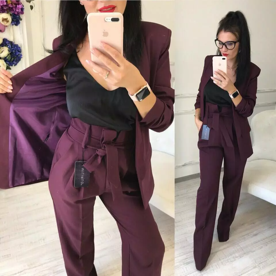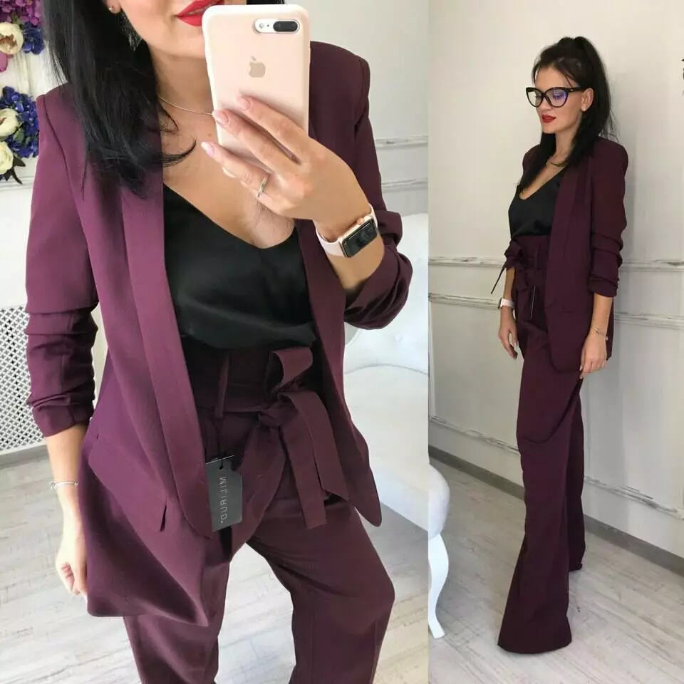 Стильний класичний костюм з тендовими штанами-трубами високої посадки та дуже ефектним піджаком з рукавами 3/4