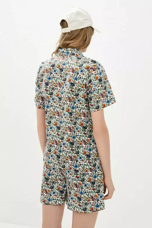 Стильний бавовняний костюм привертає увагу незвичним жовтими вставкам, що відтіняють зелені відтінки квіткового принту. В такому костюмі ви точно не будете, не поміченою на вулиці. Футболка типу поло вільного крою, з невеликим трикутним комірцем та жовтими ґудзиками. Шорти на ризниці підкреслюють вашу талію та приємно прилягають до тіла. Є два варіанта носіння моделі, як заправленою в шорти, що виділяє вашу фігуру, так і більш просторий образ. Виготовлений із сорочкової тканини (100% бавовна), Доступний для замовлення в таких розмірах: s,m,l, xl. Ця модель гарантує вам приємний на дотик матеріал, ідеально підходить для літніх днів.Обирайте цей костюм для того, щоб створити весняно-літній образ, який виручить вас в будь-яких ситуаціях.