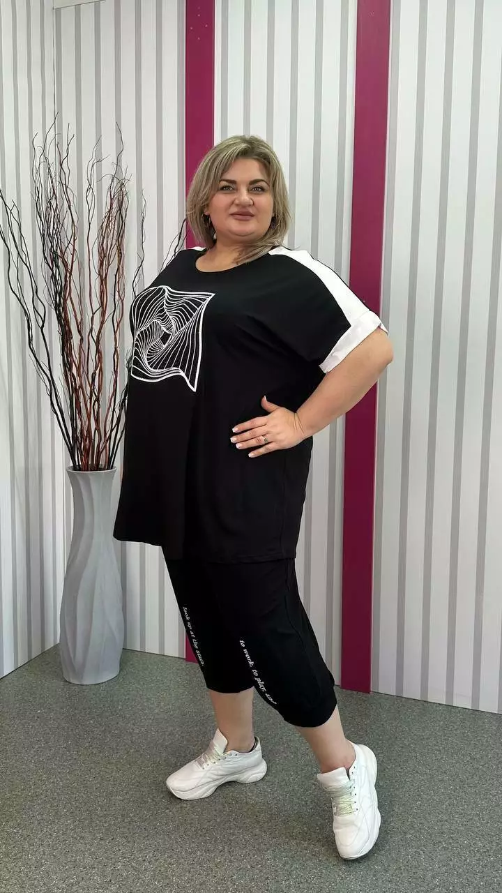 з дуже гарною розтяжністю м'яка, приємна до тіла. Костюм прикрашений якісним накатом та камінням.