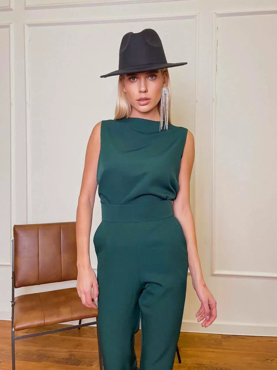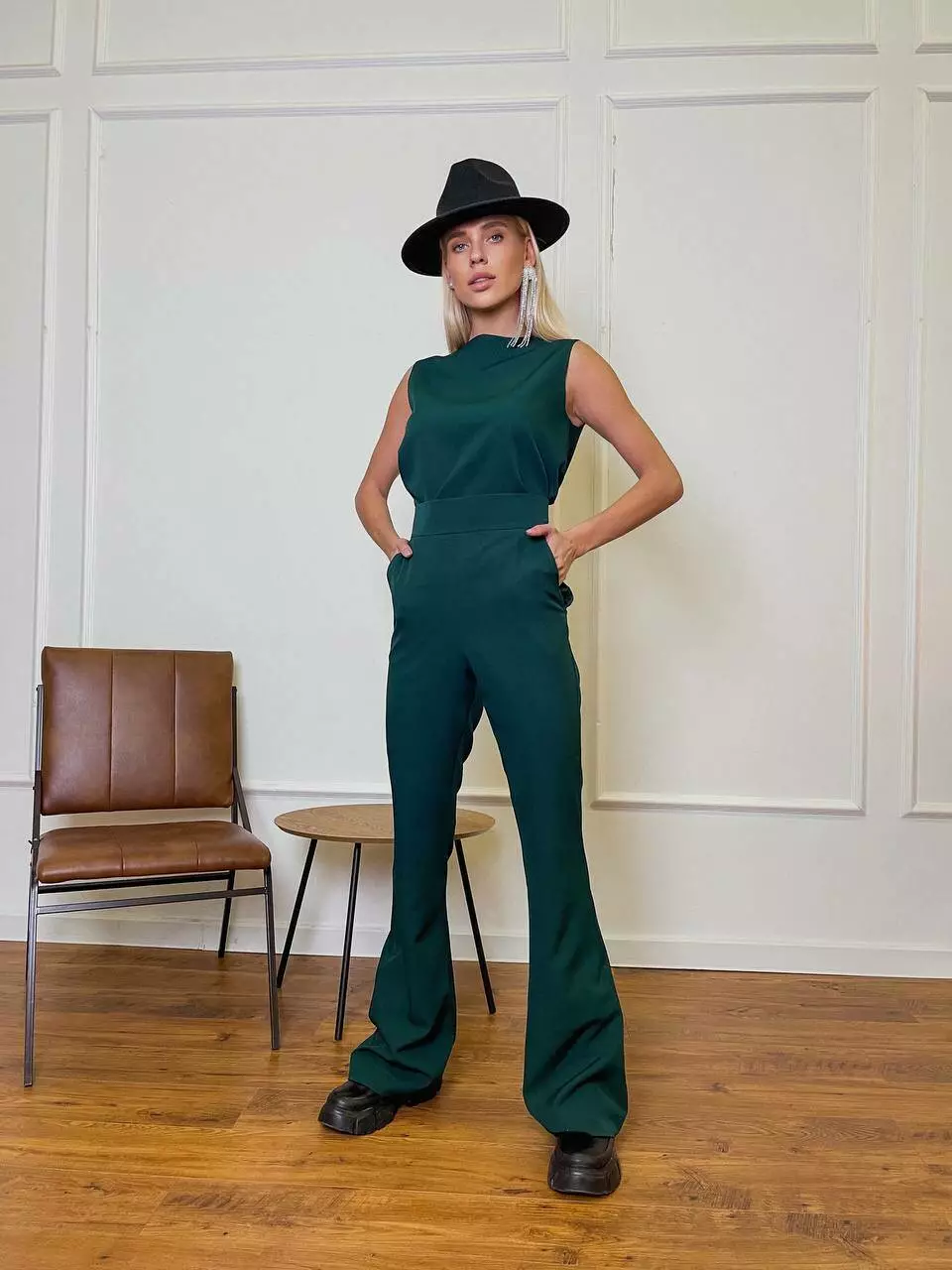 Однотонний комплект LOLA - це ідеальний варіант для стильного та модного вигляду Мінімалістичний та оригінальний костюм складається із топа, який має ідеальну посадку по грудях та вільний в талії, без кишень та застібок Штани мають високу посадку, яка ідеально підкреслить фігуру та клеш від коліна, бічні робочі кишені, застібаються штани на потайну блискавку позаду.