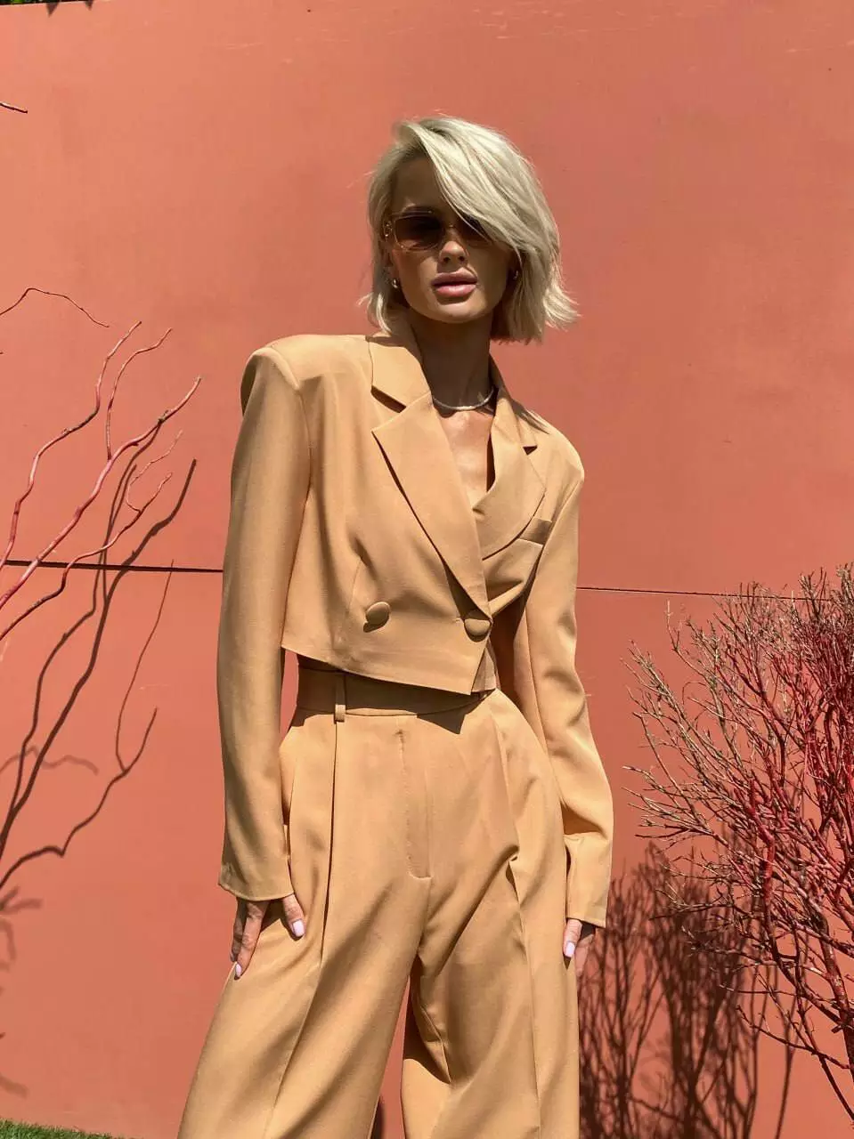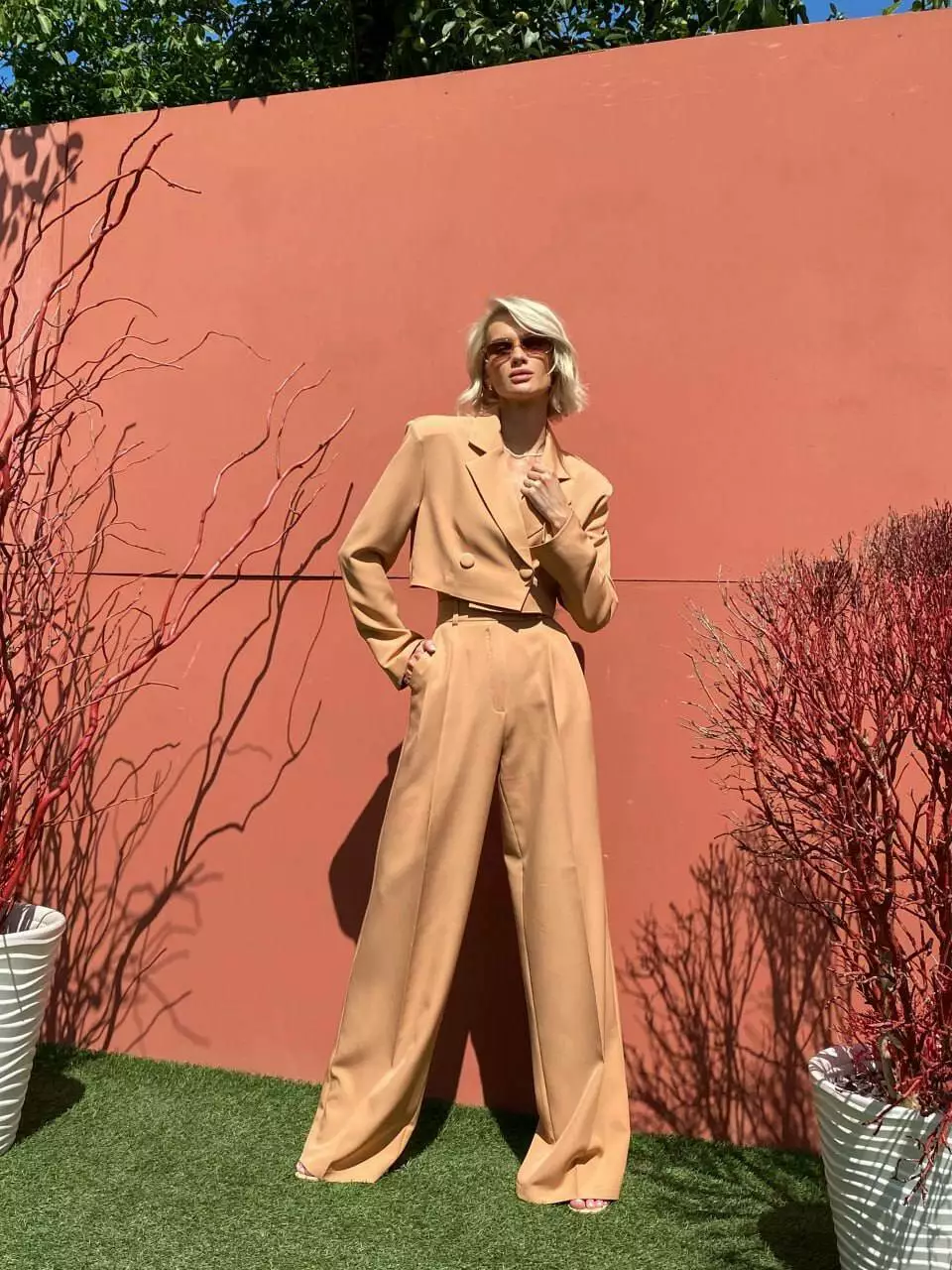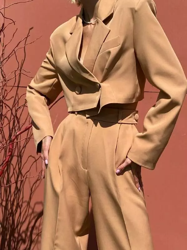 У люксовому виконанні Кроп-жакет двобортний та штани палаццо