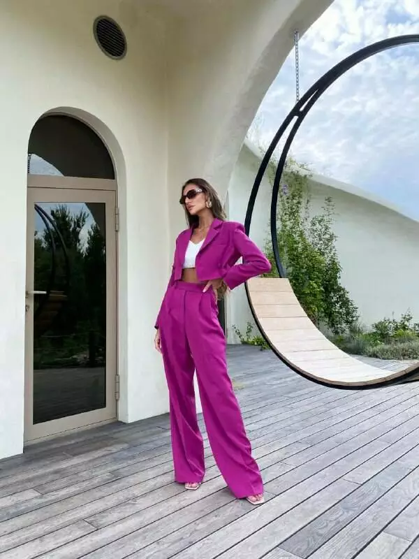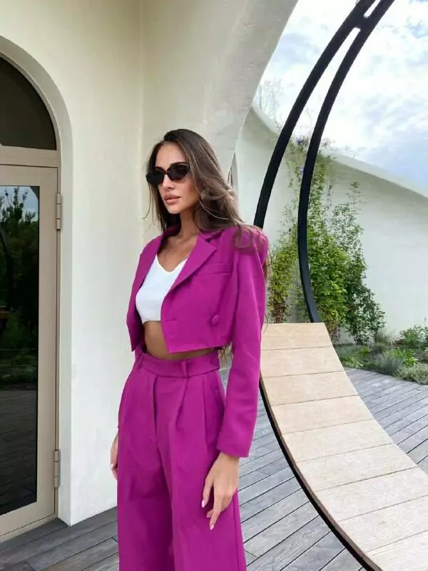 У люксовому виконанні Кроп-жакет двобортний та штани палаццо