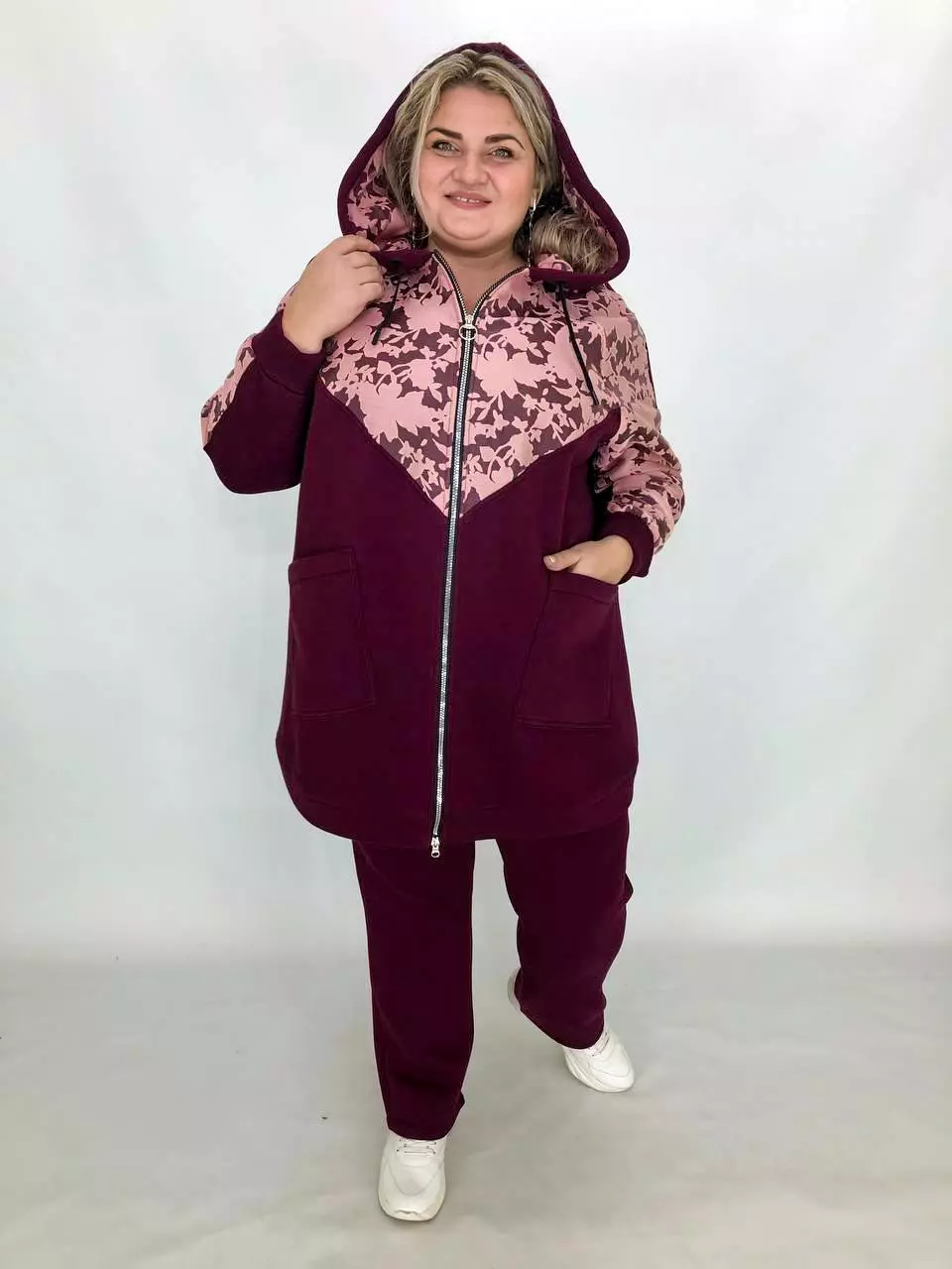 Тканина тринитка якості Люкс .Тепла, м'яка, приємна до тіла і не кашлатається, оздоблення сітка з малюнком нашита на деталі, Хороша розтяжність.
