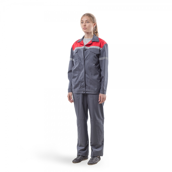 Костюм женский для защиты от общепроизводственных загрязнений и механических воздействий. Состоит из куртки и полукомбинезона