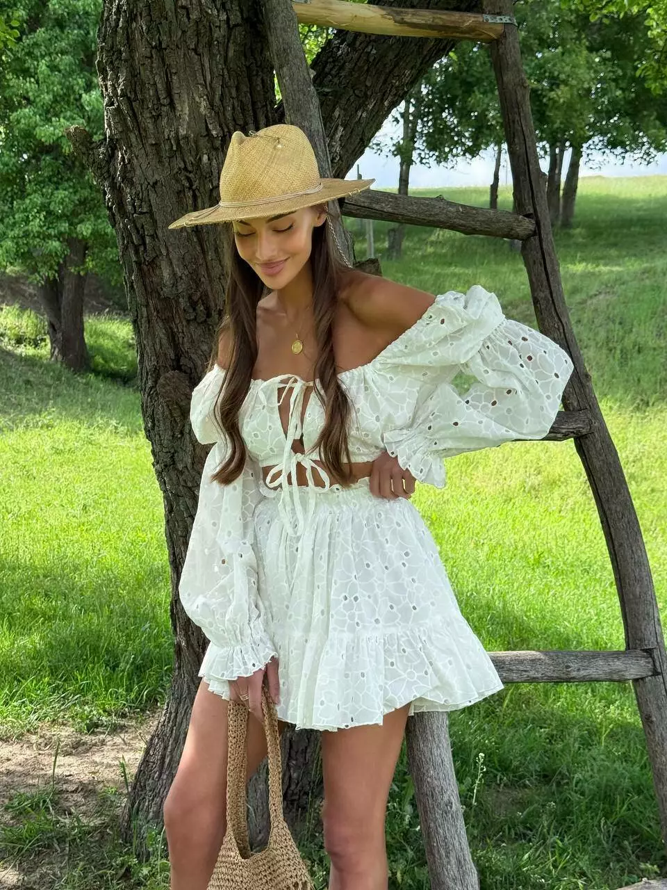 низу Ліф -топ, на завʼязках які регулюються, та обʼємними рукавами.