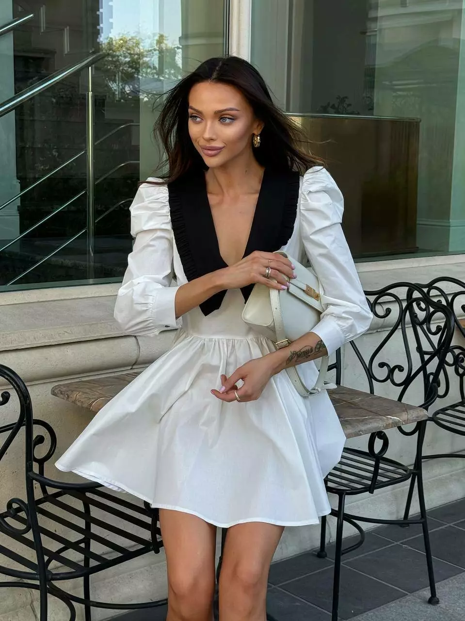Трендовий костюм з міні та ліфом Міні-Спідниця зі зборкою по низу Ліф -топ, на завʼязках які регулюються, та обʼємними рукавами.