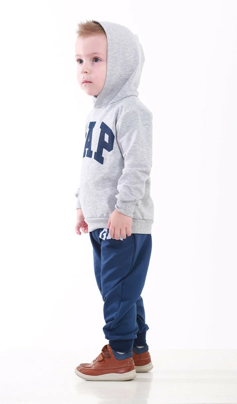 серой кофты и цветных штанов. На кофте удобный капюшон. Спереди