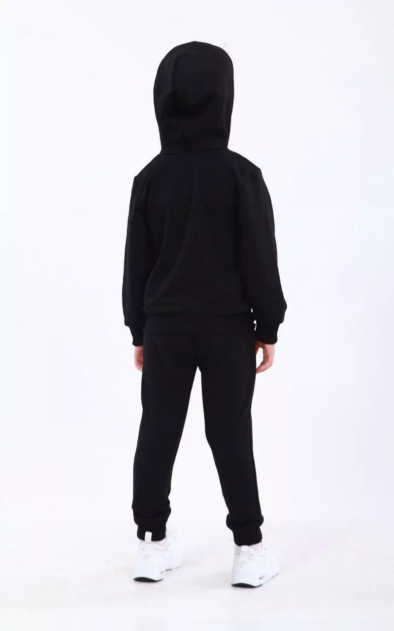 Спортивный теплый костюм зауженные штаны, кофта на молнии, костюм декорирован рисунком. В наличии только в черном цвете.