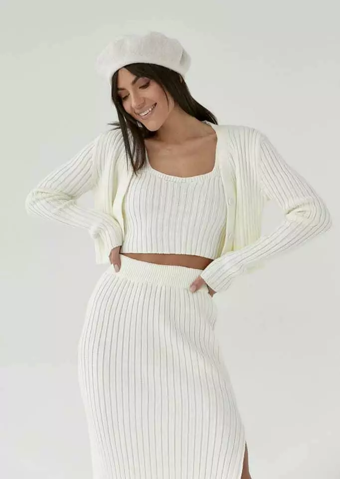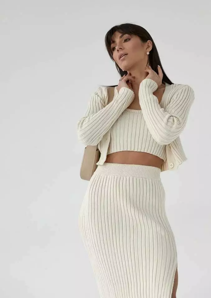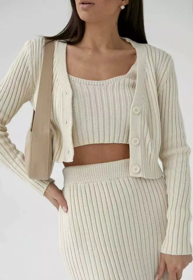 Костюм-трійка (спідниця + топ + укорочений кардиган) 1678