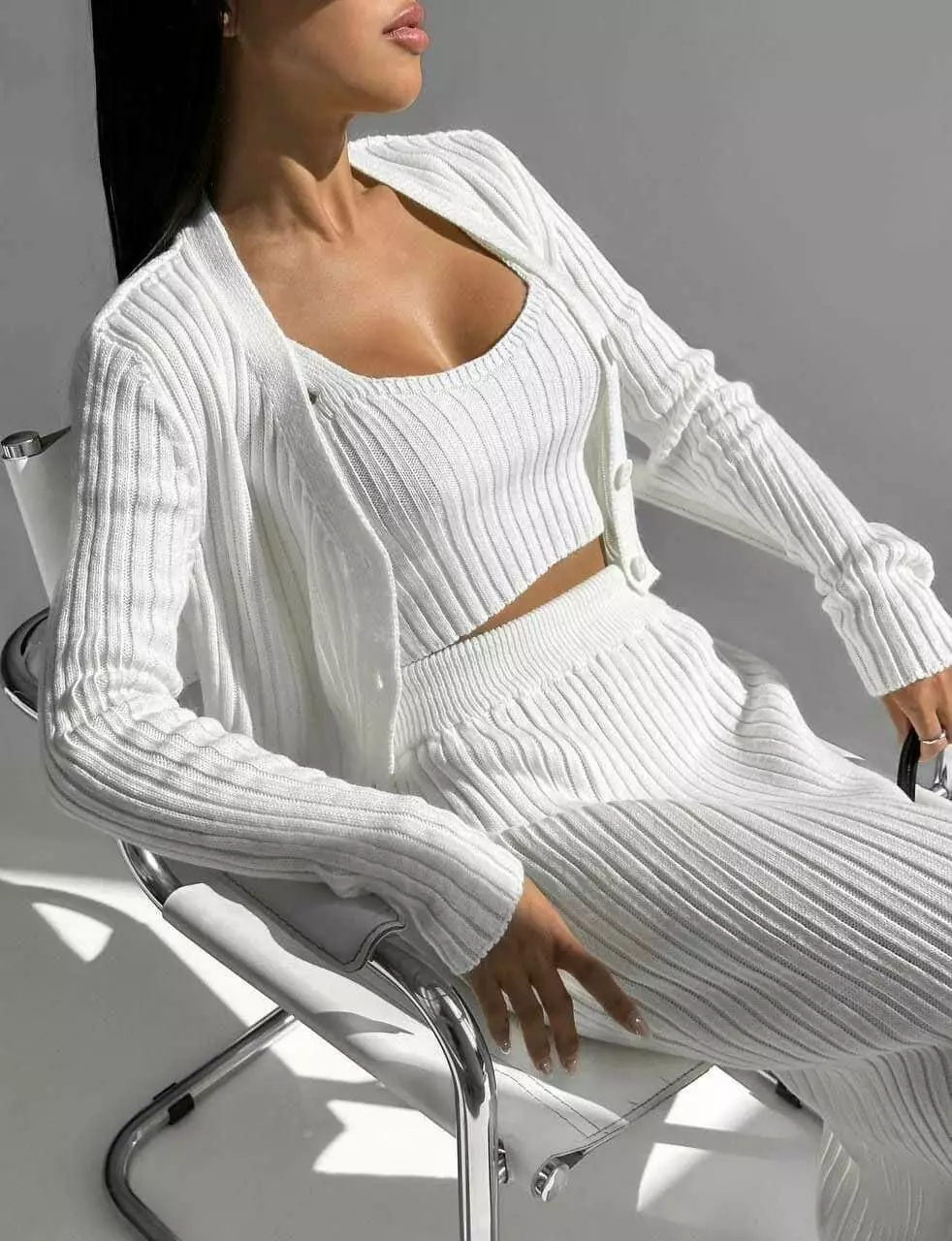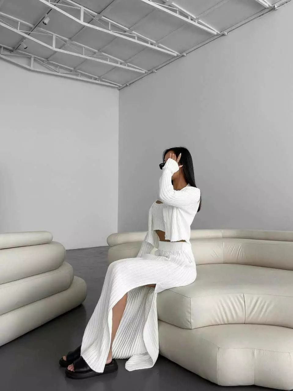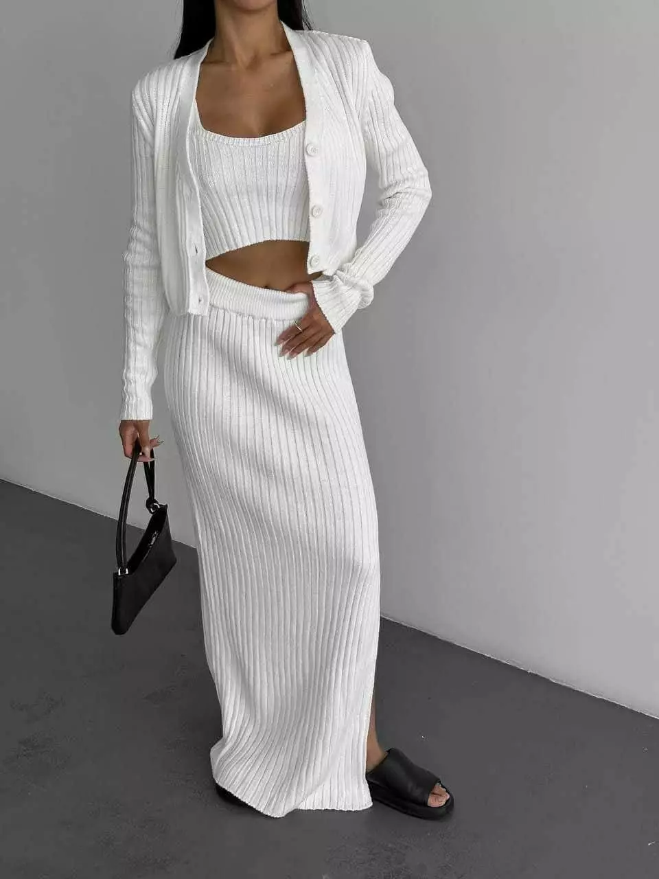 Костюм-трійка (спідниця + топ + укорочений кардиган) 1678