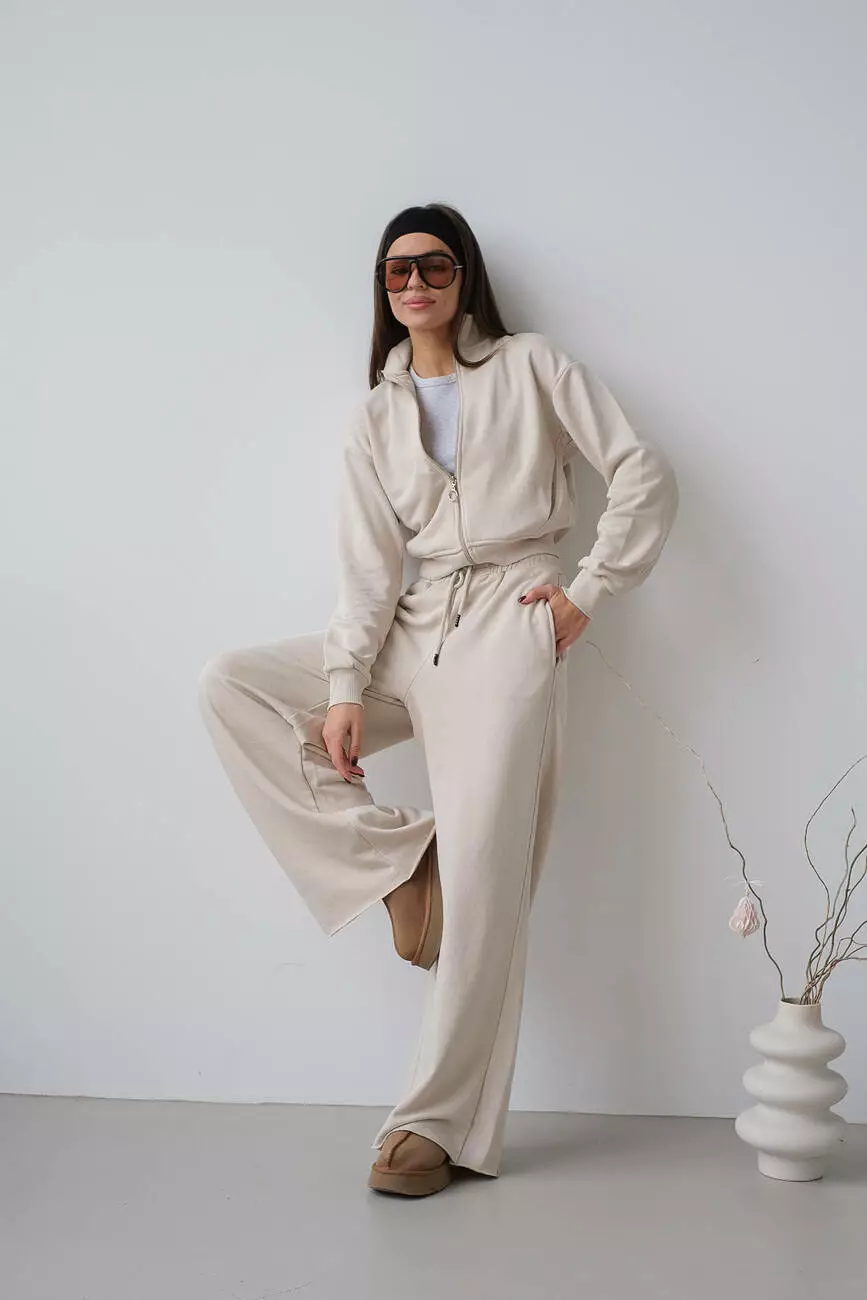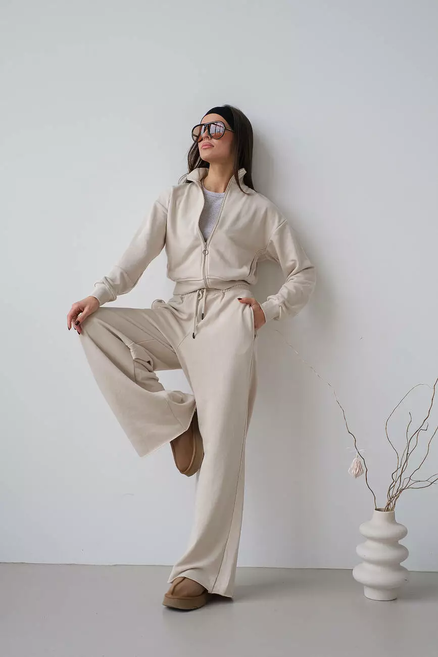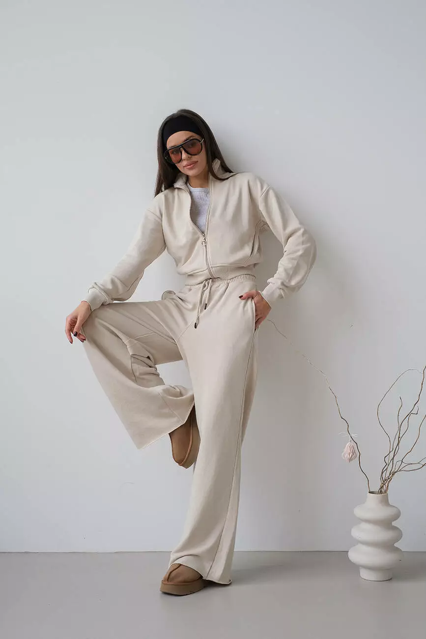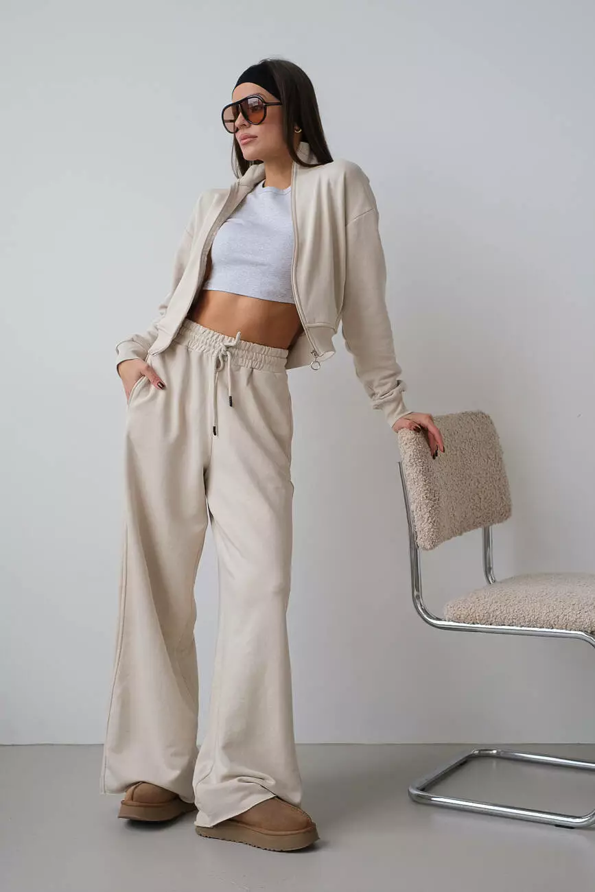 Костюм укорочений бомбер та палаццо бежевий