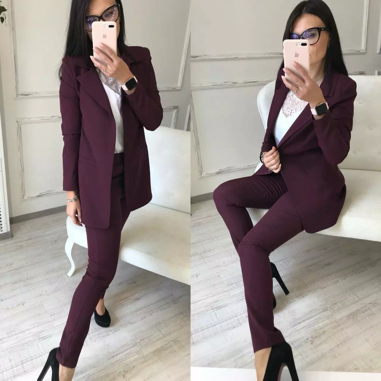 Стильний класичний костюм із тендовими штанами-дудочками високої посадки та дуже ефектним піджаком прямого крою з кишенями