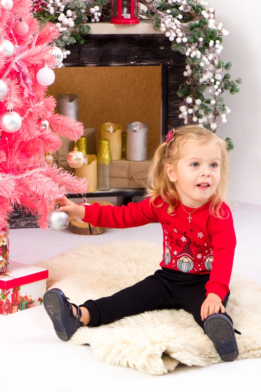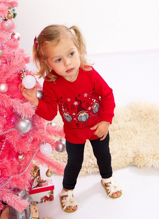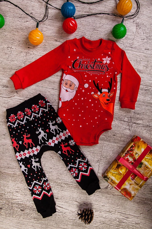 Зручний та оригінальний комплект для новонароджених Комплект складається з двох речей – боді з довгим рукавом та штанців. Боді легко одягнути через голову за рахунок кнопок. Знизу є функціональні кнопки, які допомагають легко одягнути малюка. Штани розраховані під підгузок. Яскравий накат у новорічному стилі підніме настрій усім навколишнім, та подарують новорічний настрій.