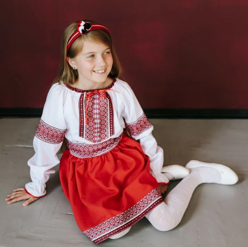 Дитячий вишитий костюм яскравого кольору із оригінальною