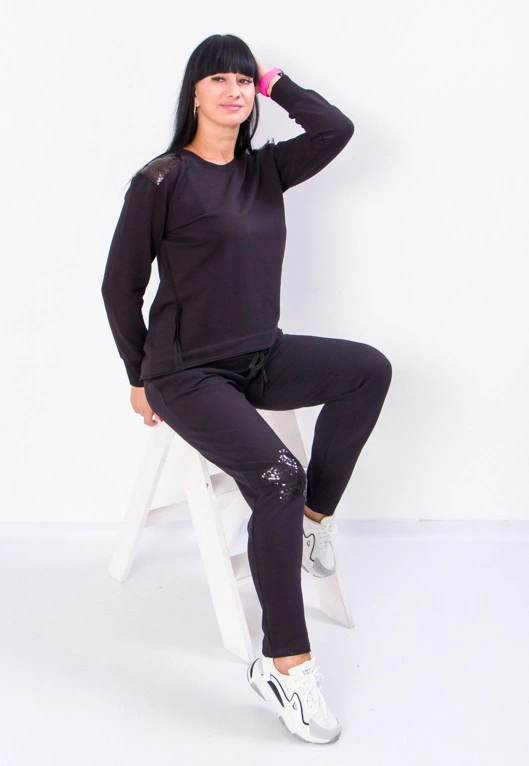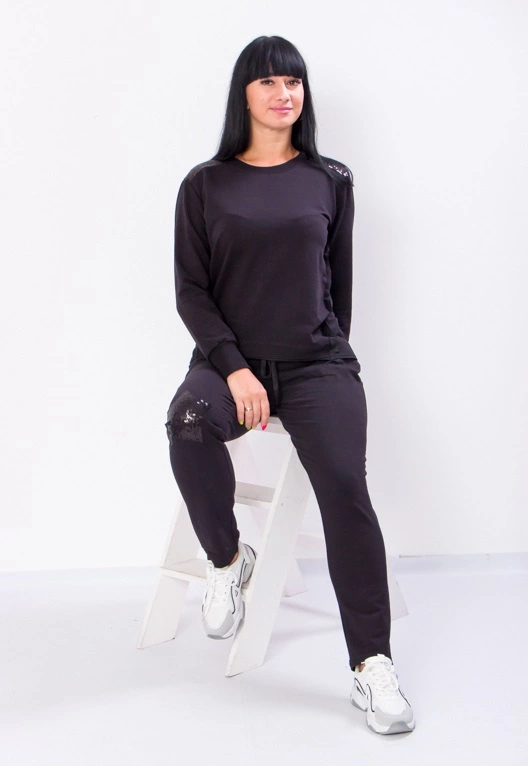 Елегантний спортивний костюм від ТМ «Трикотажний Край» - це незамінна спортивна класика, яка прикрасить будь-який гардероб. Демісезонний костюм колекції зшитий з популярної, а головне зручної тканини двохнитка, яка прослужить довго і подарує чудові відчуття. Штани прямого крою з середньою посадкою, кофта вільного крою підібрані модельєрами так, щоб Ваша фігура виглядала в найкращому світлі під весняними сонячними променями. Вироб прикрашає декоративна аплікація з паєток по плечах і на передніх половинках брюк. Цей спортивний наряд, можна носити як в щоденній метушні, так і на вихід у світ. Зручна тканина не буде заважати рухам під час активних дій. Немає сумнівів, жіночний спортивний стиль цього костюма підкорить серце будь-якої модниці!