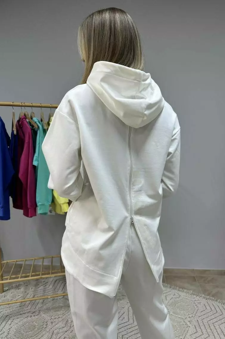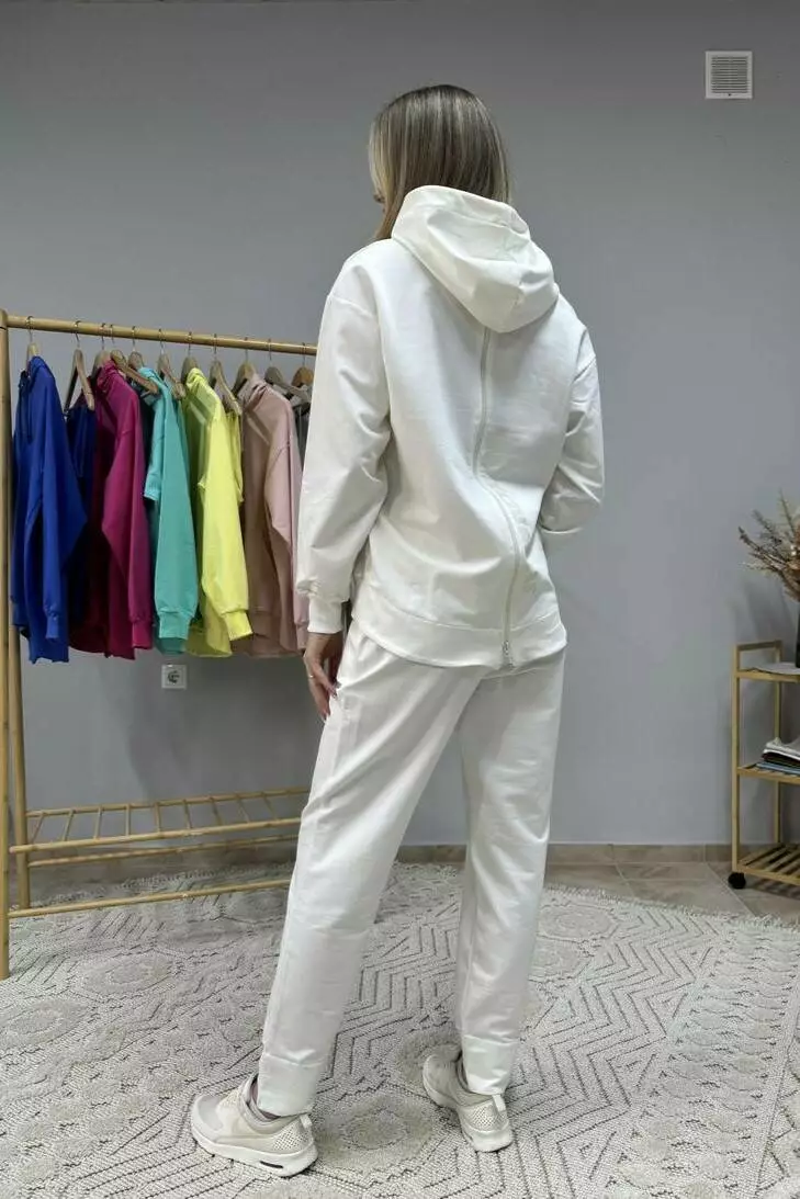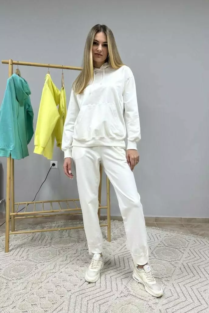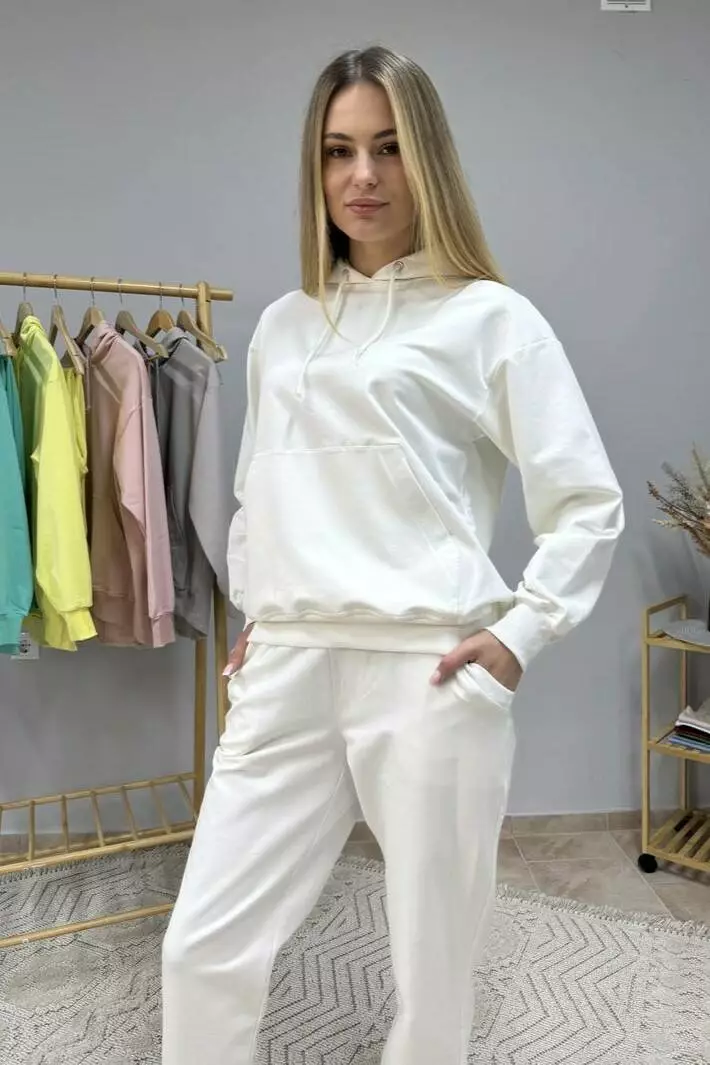 Костюм жіночий із двонитки: худі з капюшоном і кишенею кенгуру та