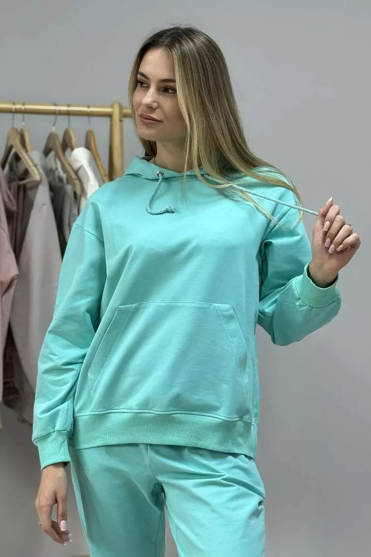 Костюм жіночий із двонитки: худі з капюшоном і кишенею кенгуру та