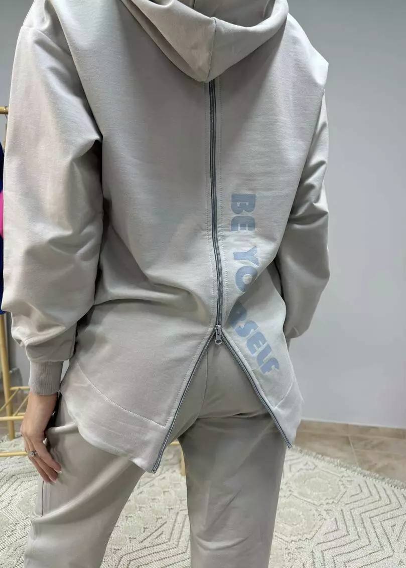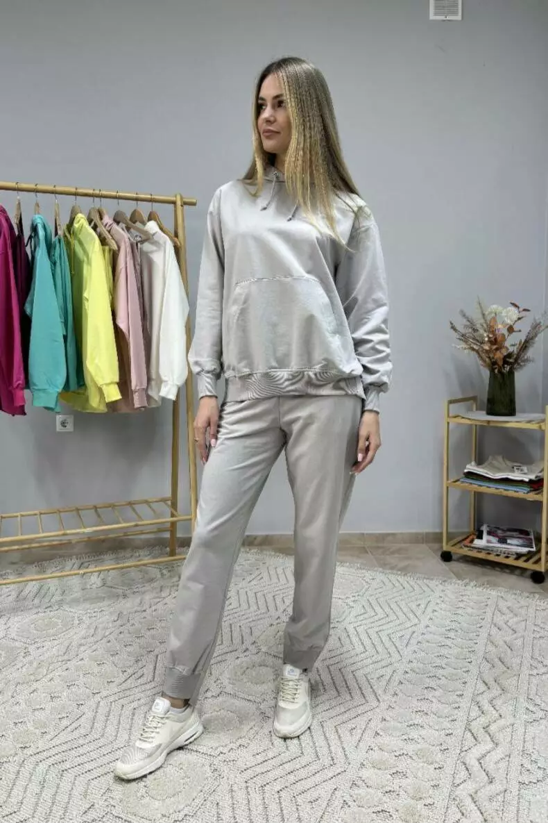 Костюм жіночий із двонитки: худі з капюшоном і кишенею кенгуру та