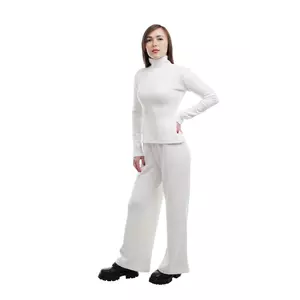 Теплий жіночий костюм з ангори без зайвих деталей. Легка, майже невагома тканина чудово утримує тепло, а завдяки поєднанню віскози й поліестеру костюм стає зносостійким і простим у догляді. Прилеглий гольф і широкі штани створюють збалансований силует, в якому комфорт поєднується з естетикою сучасного базового одягу.