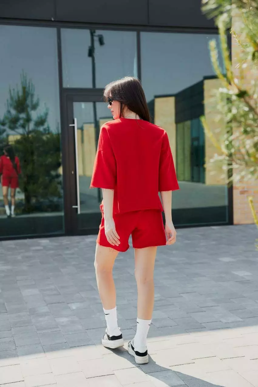 Костюм жіночий футболка та прямі шорти (М135), петля, червоний S