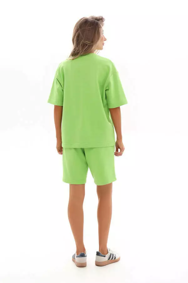 який складається з зручної футболки та вільних шортів, розроблений