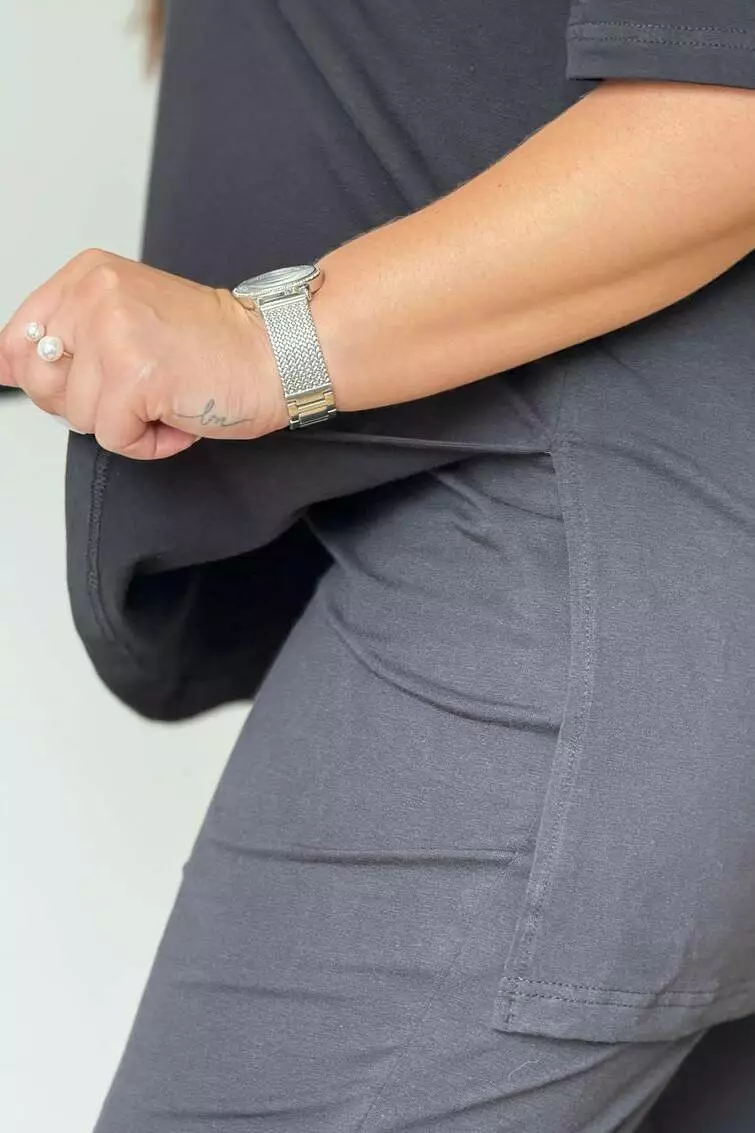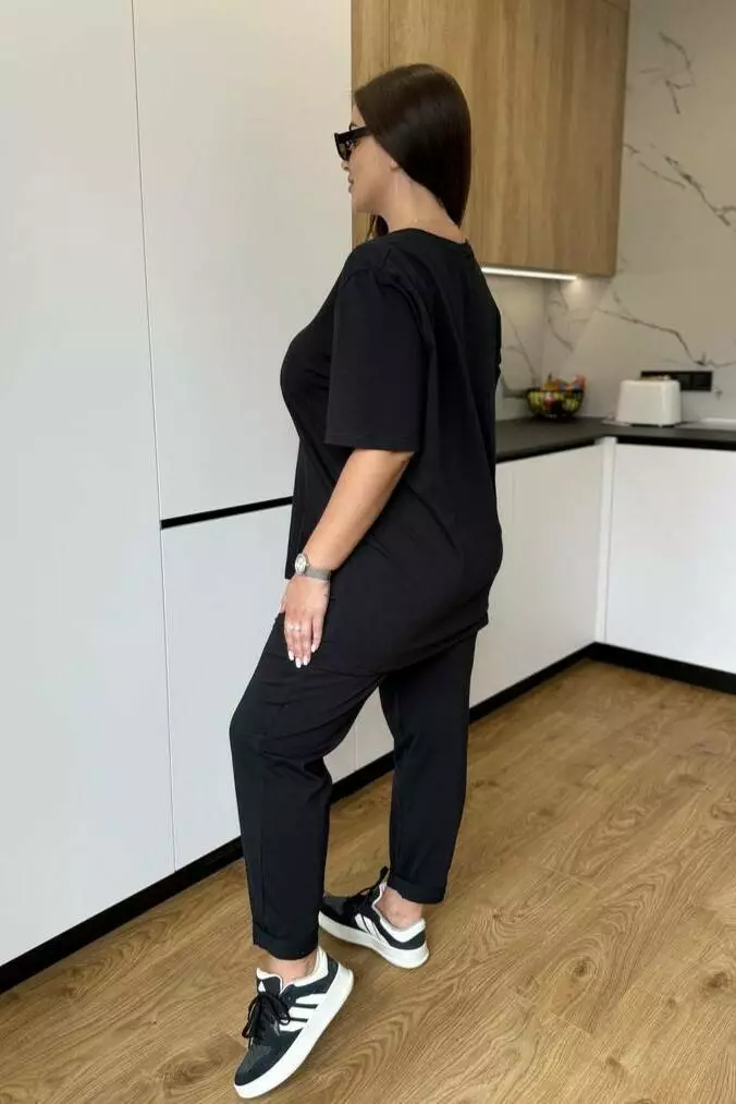 Костюм жіночий літній: штани з кишенями та футболка з розрізами й