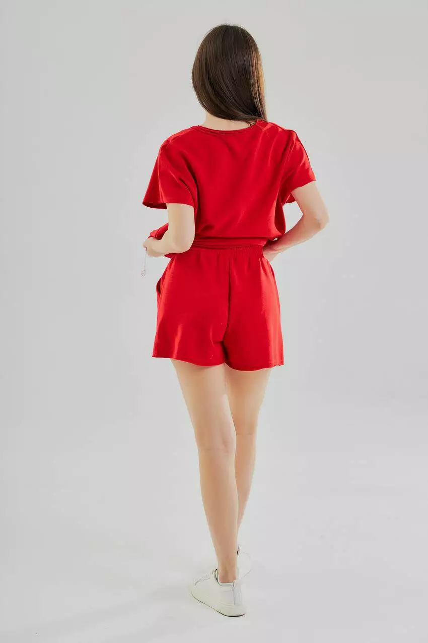 Костюм складається з легких шортів з кишенями та зручної футболки,