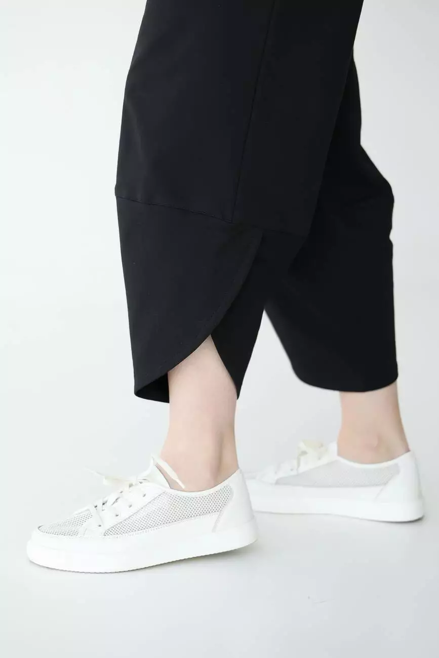 Родзинкою моделі є декоративні розрізи по низу штанів, які додають