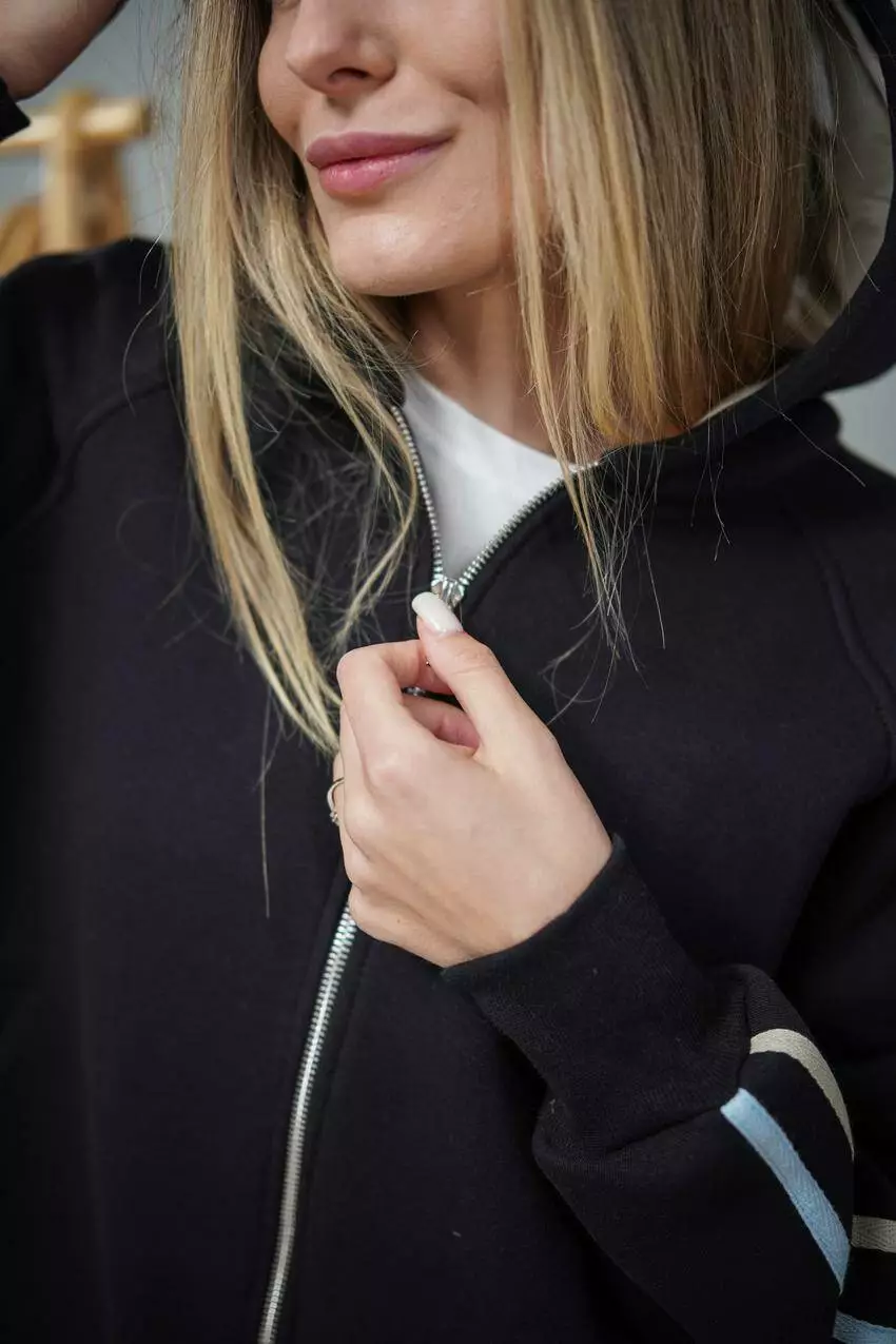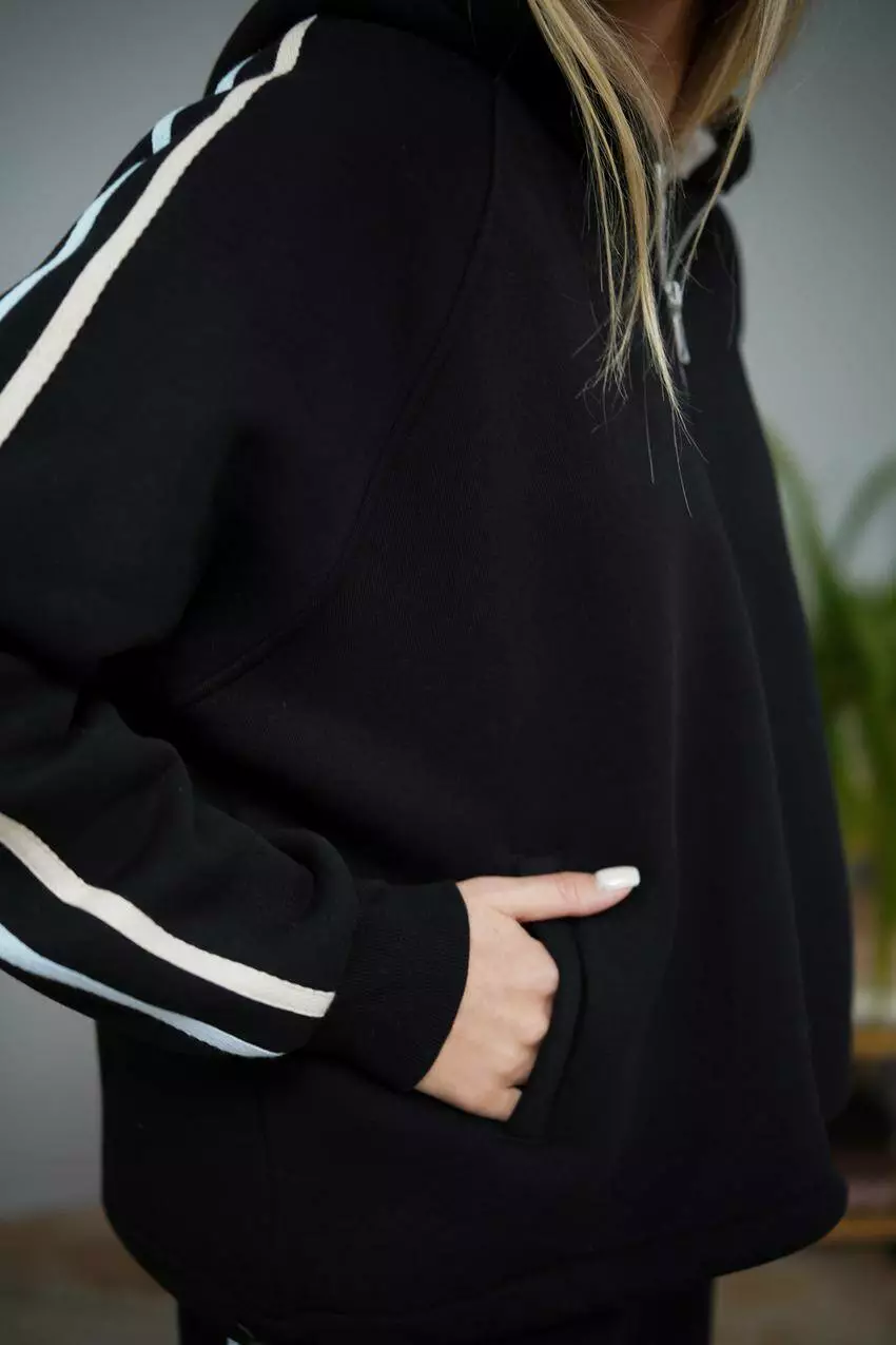 Жіночий теплий костюм на замку з начосом: худі з капюшоном та прямі