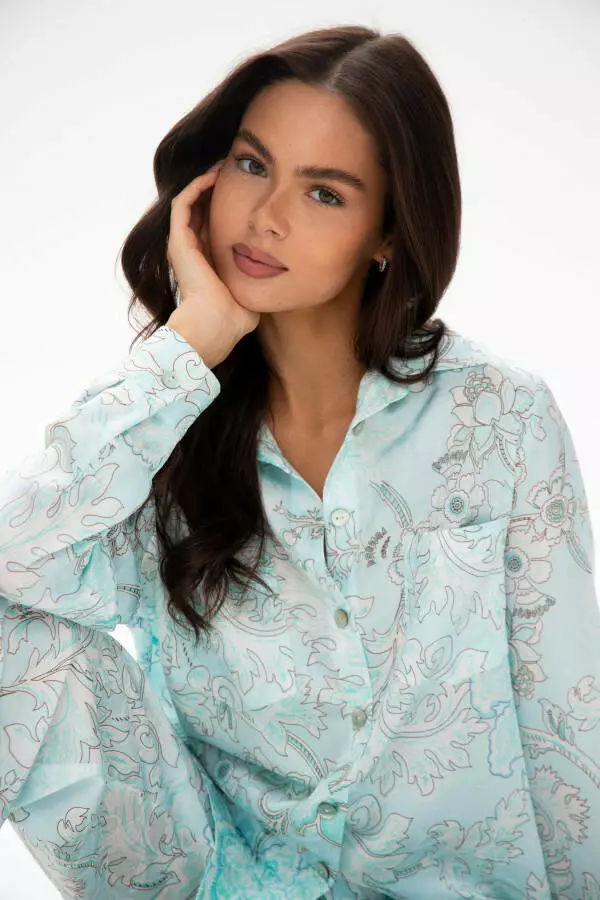 Ідеальне поєднання затишку та розкоші. Костюм із віскозного шовку з тонким жакардовим візерунком створена для жінок, які цінують комфорт і естетику. Легкий блиск тканини, шовковиста текстура та натуральні ґудзики з мушлі надають образу витонченості. Підходить для щоденного та святкового носіння