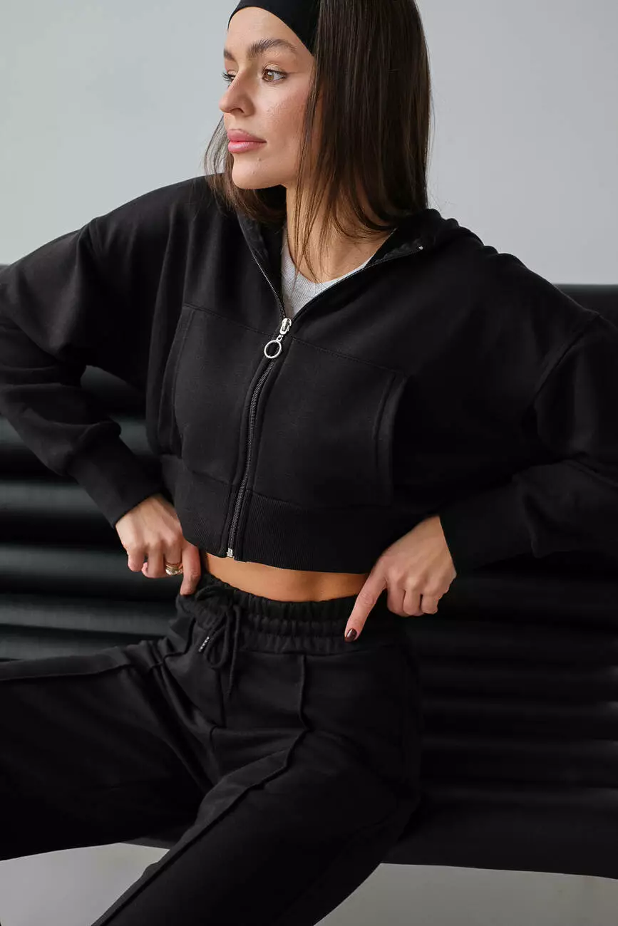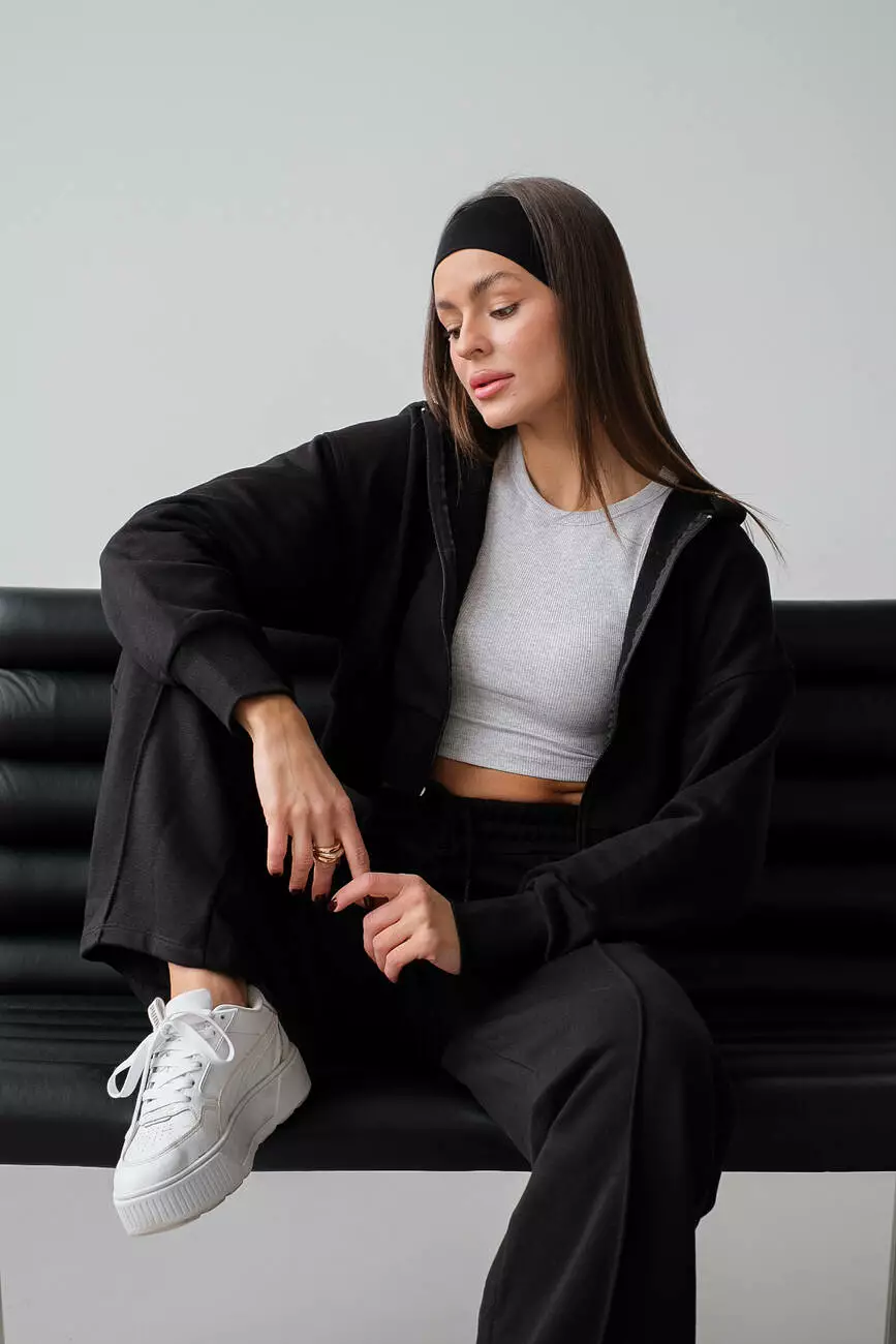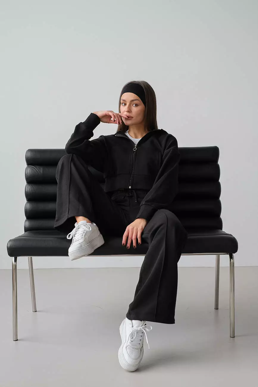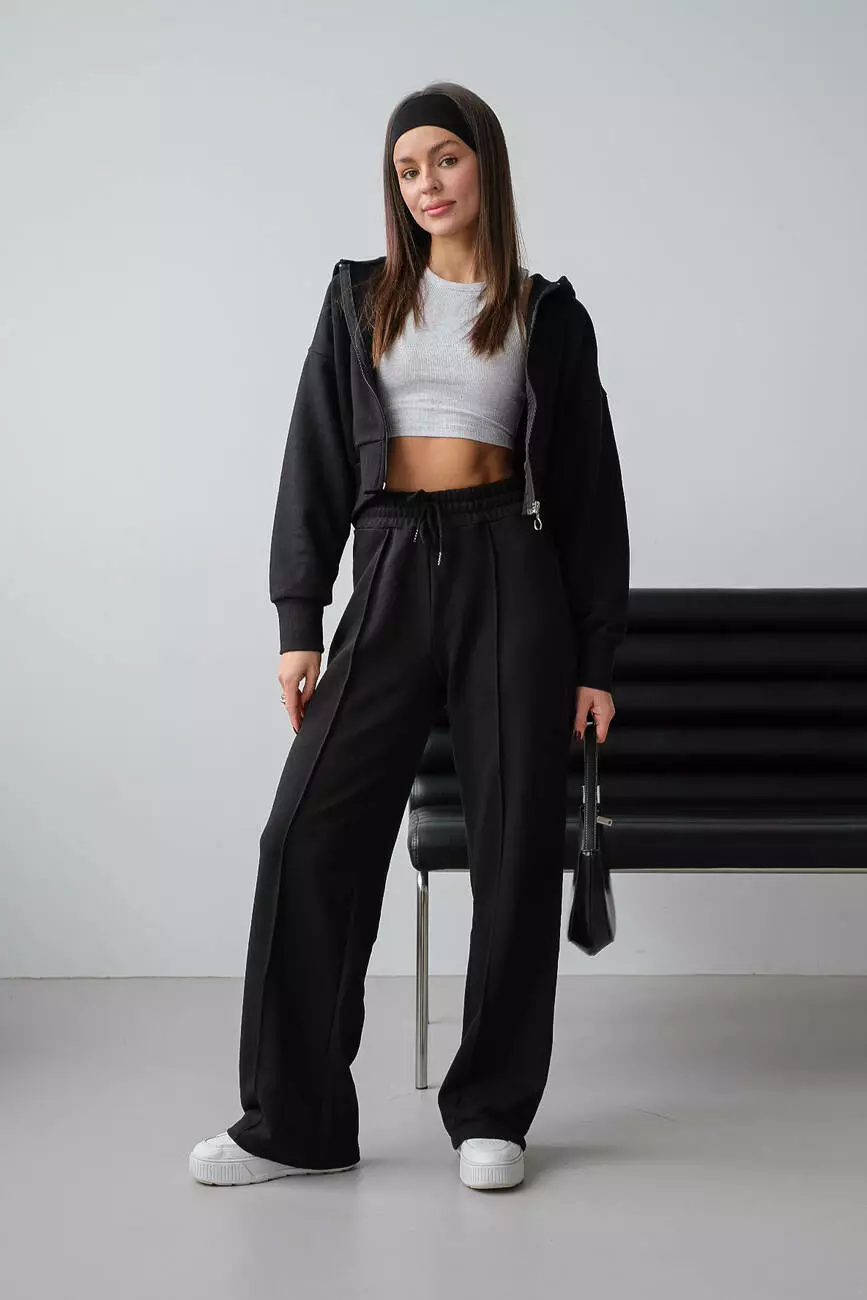 Костюм зіп худі та палаццо чорний