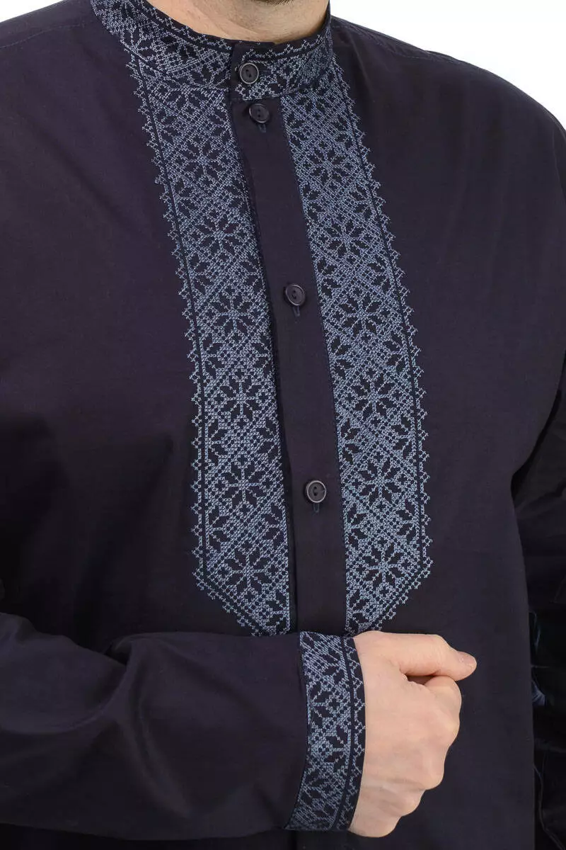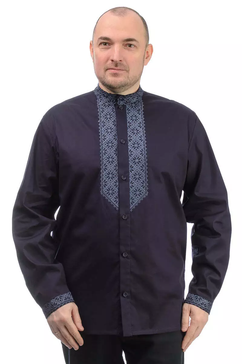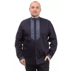 Котонова чоловіча сорочка-вишиванка зроблена з бавовняного матеріалу, має вишивку на грудях, комірі та манжетах.