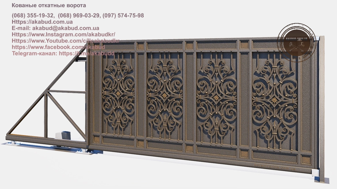 Кованые откатные ворота разных форм и размеров доставляются Киев, Одессу, Днепропетровск, Харьков, Львов, Винницу, Николаев, Львов, Полтаву, Кривой Рог, Херсон, Черновцы, Ужгород, Ивано-Франковск, Житомир, Запорожье, Сумы и многие другие города Украины.