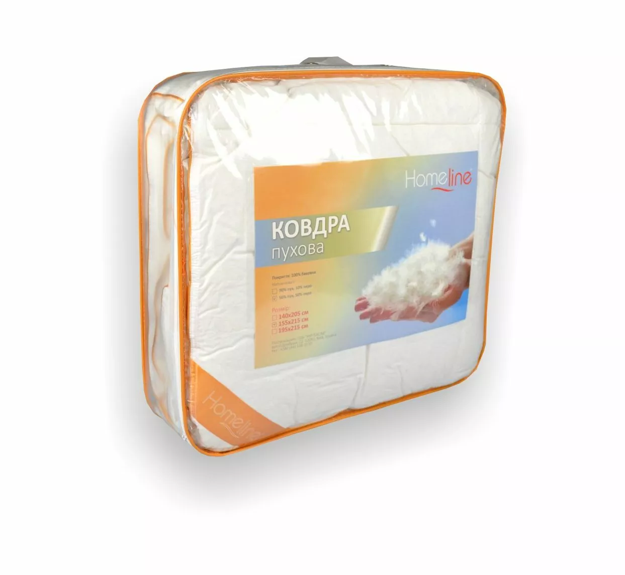 Ковдра напівпухова з пуху 50% та дрібного пір'я 50%. Напірник