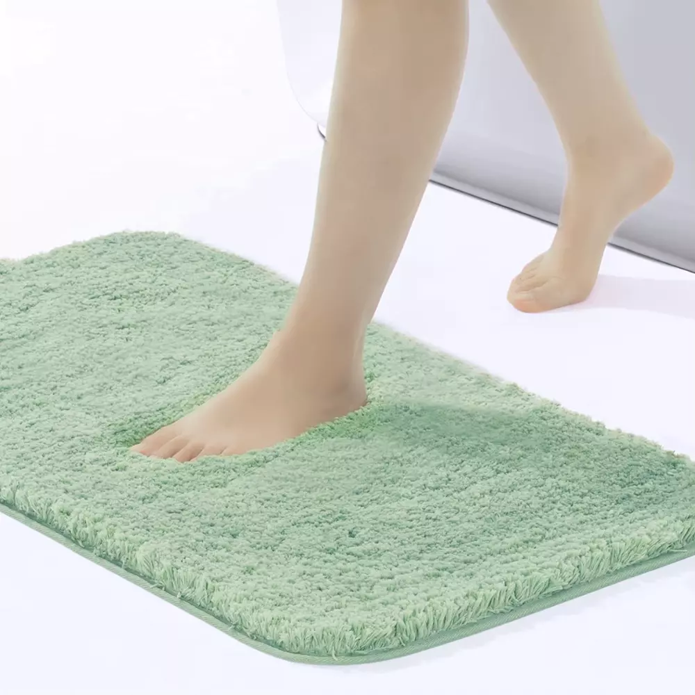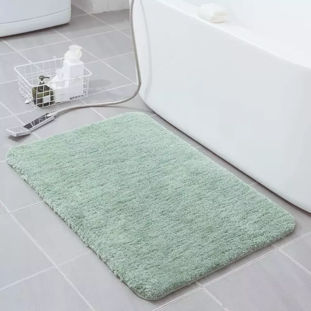 Коврик для ванной в свежем зелёном цвете с мятным оттенком создаёт