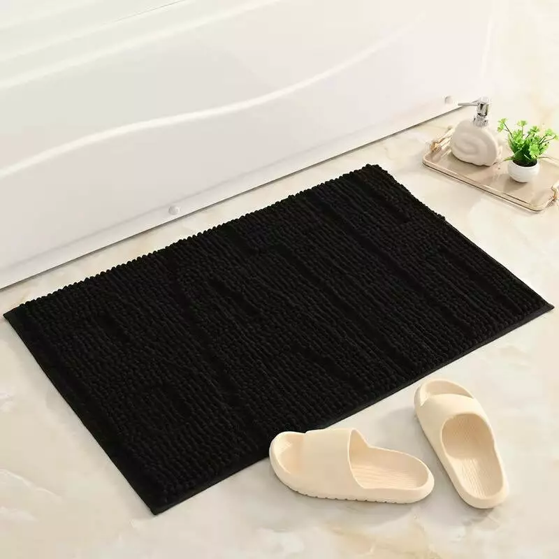 Черный коврик для ванной из микрофибры шинилл станет стильным и