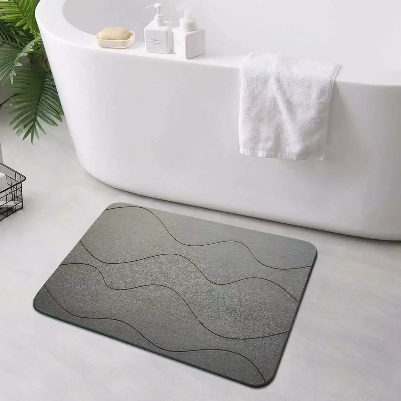 Коврик из диатомита серого цвета с простым волнистым узором — это