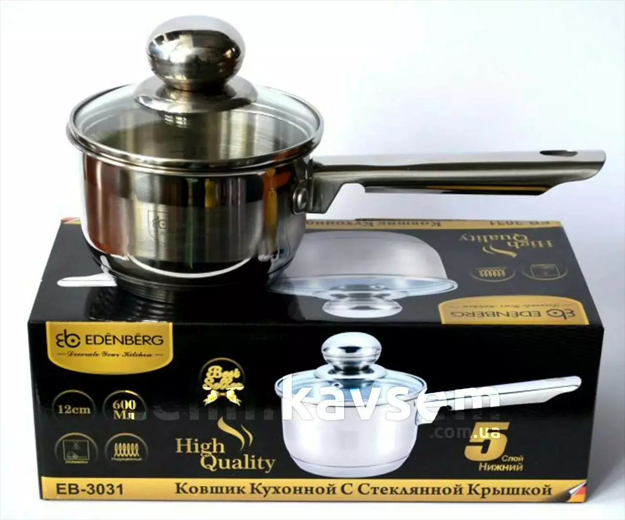 Ковшик 0,6л з скляною кришкою EB-3031