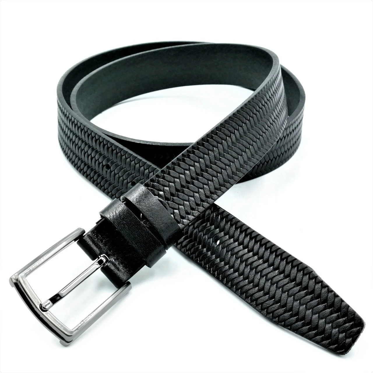 Ремень мужской брючный кожаный, классическая пряжка, ширина 3,5 см,