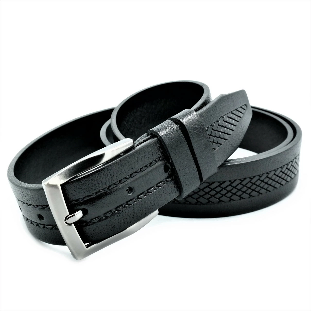 Ремень мужской брючный кожаный, классическая пряжка, ширина 3,5 см,