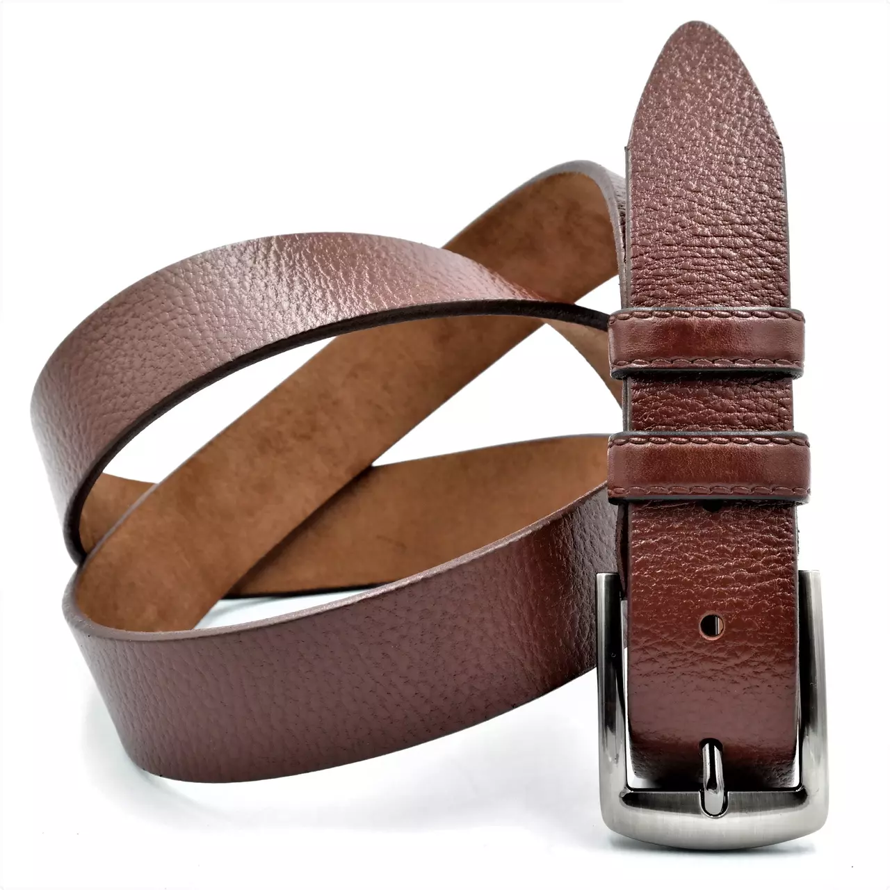 Ремень мужской брючный кожаный, классическая пряжка, ширина 3,5 см,