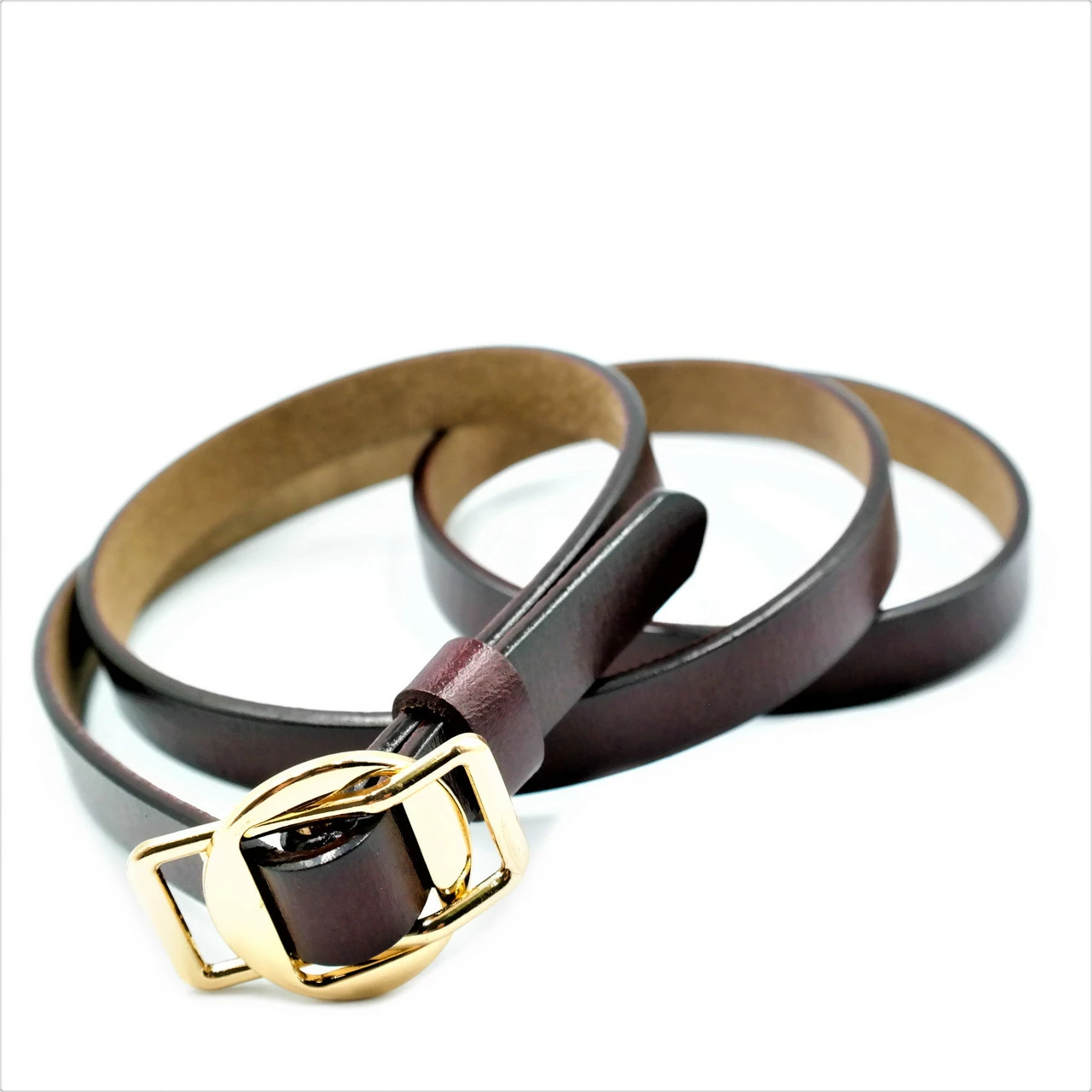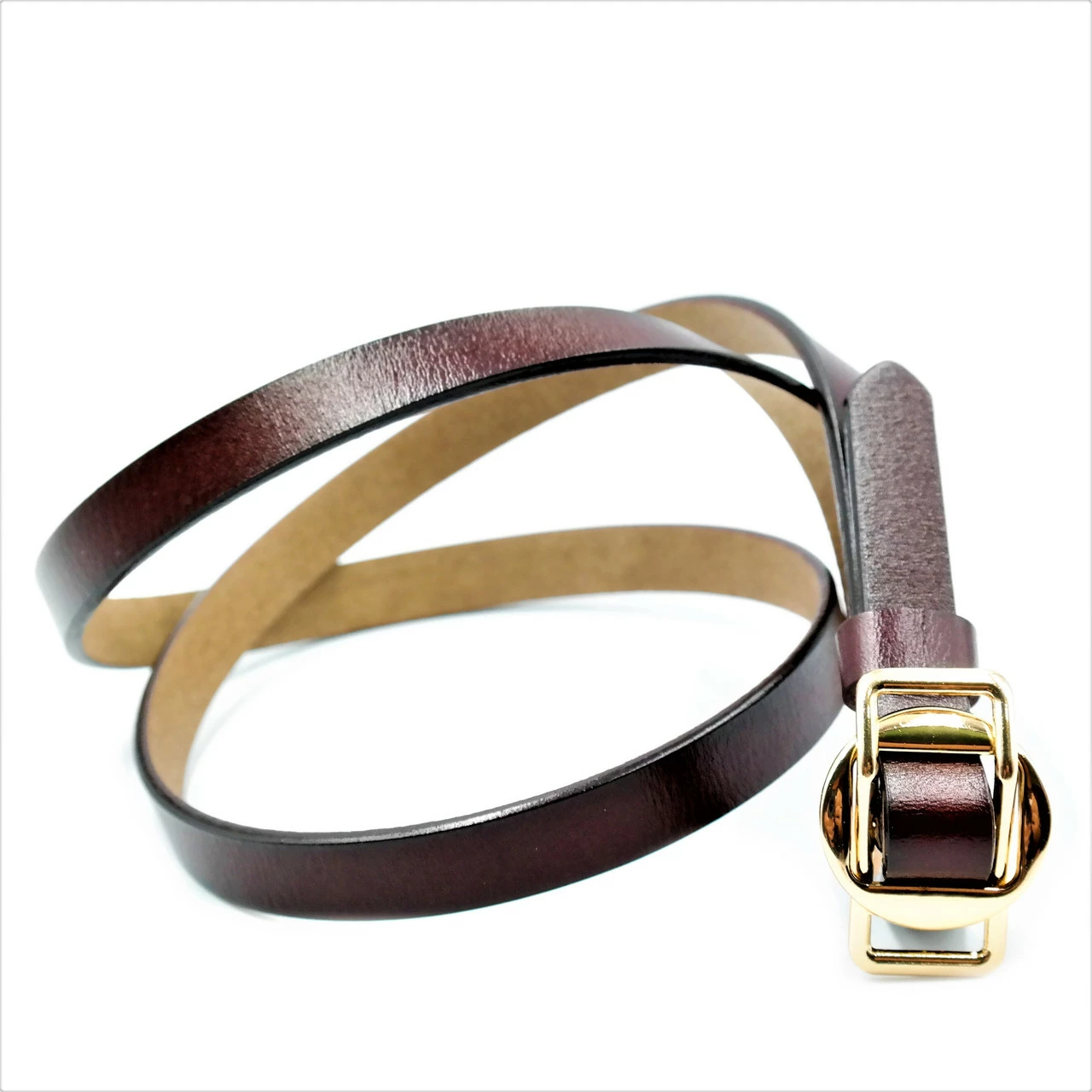 Ремень женский кожаный, зажимная пряжка, ширина 1,5 см, длина
