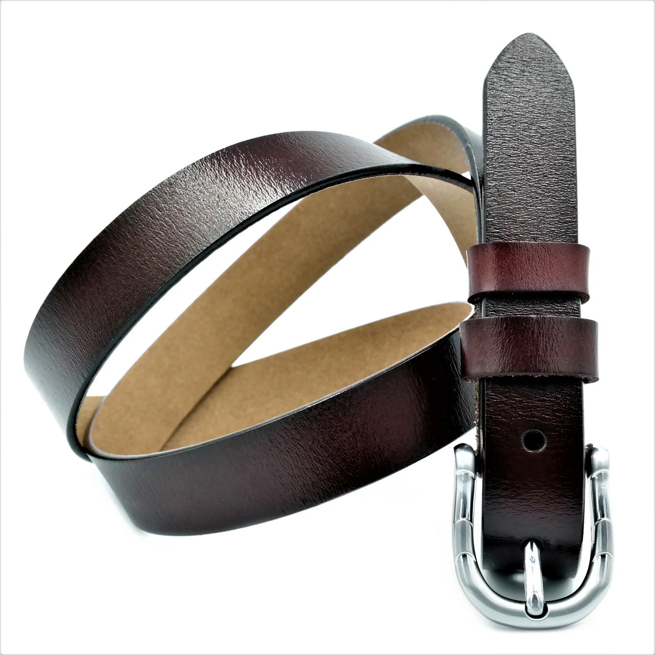 Ремень женский кожаный, классическая пряжка, ширина 2,5 см, длина