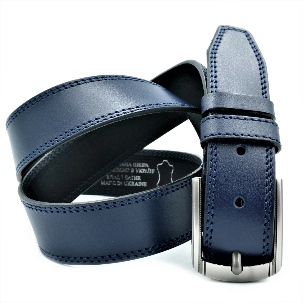 Ремень мужской кожаный, классическая пряжка, ширина 4 см, длина
