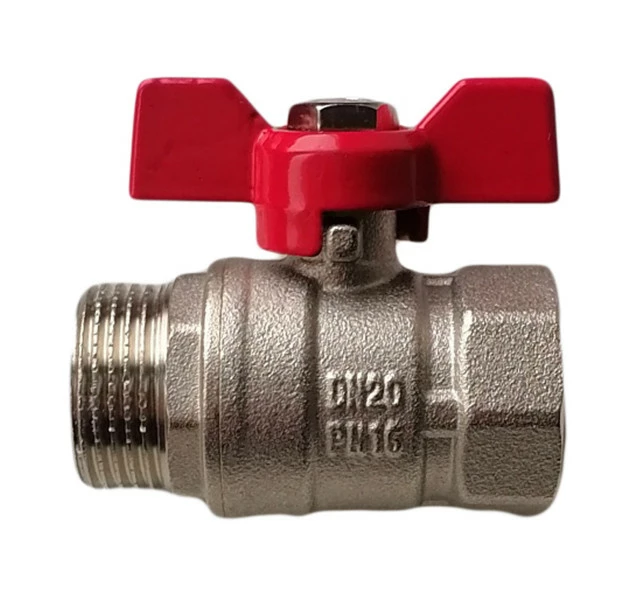 Кран кульовий, тип з'єднання внутрішнє-зовнішнє різьблення. Кран з ручкою "метелик". Корпус кульового крана виготовлений із латуні, поверхня виробу – нікельована. В основі даного пристрою лежить замикаючий елемент - шар, за допомогою якого відбувається відкриття або закриття проходу робочого середовища. Кран застосовується для систем господарського та промислового водопостачання. Робоча температура до 60 градусів, максимальний тиск 16 бар. Використовується для неагресивних рідин, котрі не викликають корозію крана.